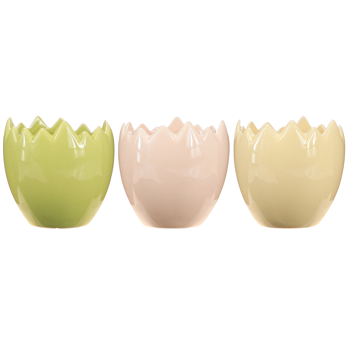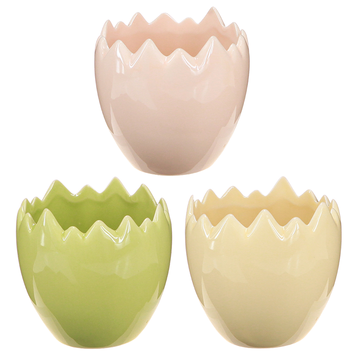 Kto nie lubi upiększać swojego domu drobnymi, uroczymi detalami? Nasze doniczki w kształcie jajek z postarzanymi krawędziami dodadzą wyjątkowego charakteru każdemu pomieszczeniu! Na parapecie, stole czy w dekoracyjnej aranżacji, te doniczki oferują niezliczone możliwości kreatywnego wyeksponowania małych roślin, wiosennych kwiatów, a nawet wielkanocnych dekoracji. Który parapet nie rozbłyśnie nutą wiosennej świeżości, gdy postawisz na nim te urocze doniczki? Klasyczne połączenie pastelowych kolorów – delikatnej żółci, różu i świeżej zieleni – sprawia, że te doniczki stanowią harmonijny dodatek do każdego stylu aranżacji wnętrz. A co najlepsze: są dostępne w praktycznym zestawie trzech sztuk, idealnym do realizacji indywidualnych pomysłów dekoracyjnych!