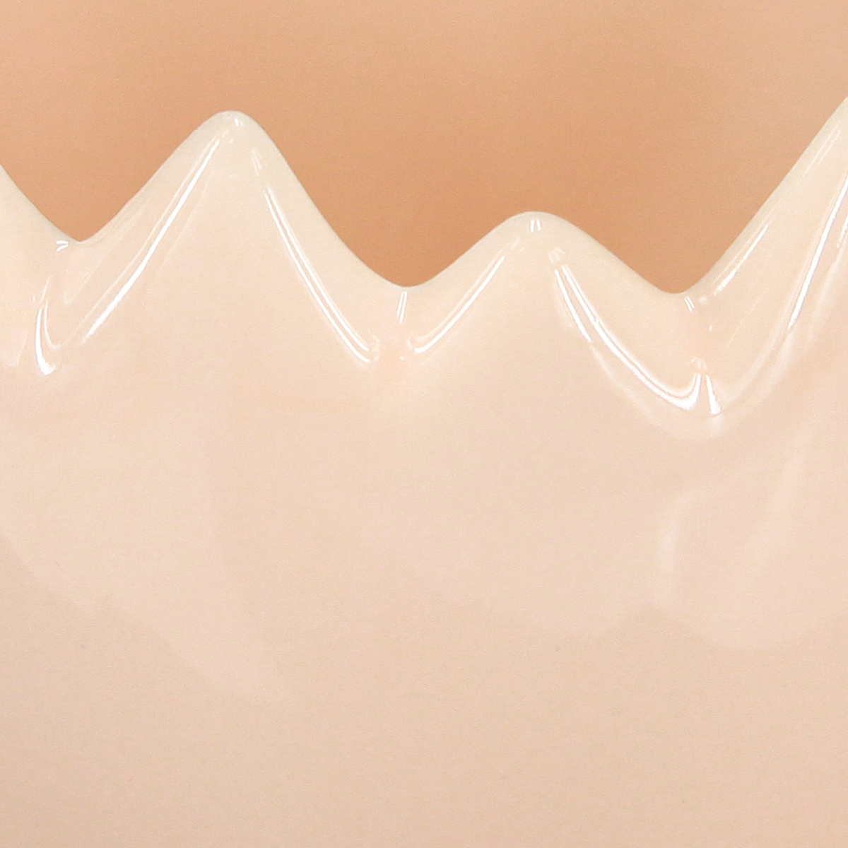 - Jajowaty kształt z dekoracyjną, połamaną krawędzią