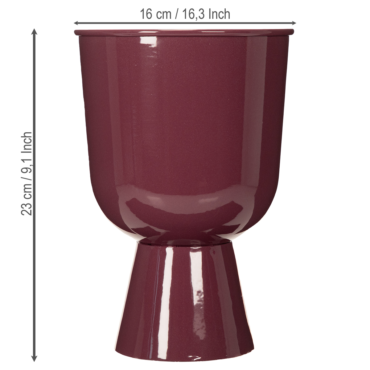 Ta doniczka w kształcie trofeum jest nie tylko funkcjonalna, ale i przyciąga wzrok. Dzięki cudownie nasyconej czerwieni i eleganckiemu, subtelnemu, metalowemu wyglądowi doda nowoczesnego akcentu każdemu wnętrzu. Jej wymiary (16 cm średnicy i 23 cm wysokości) idealnie nadają się do roślin średniej wielkości, a solidna metalowa konstrukcja gwarantuje trwałość. Szukasz nowoczesnego, nieskomplikowanego dodatku, który jednocześnie robi wrażenie? Ta doniczka została zaprojektowana właśnie w tym celu. Postaw ją na stoliku nocnym w salonie, aby stworzyć przytulną atmosferę. A może na kredensie w przedpokoju? Z pewnością stanie się tematem rozmów! Stworzy również stylową i inspirującą atmosferę w biurze, podnosząc poziom komfortu. Dla osób lubiących kreatywność doniczka może również znaleźć nowe zastosowanie: do suszonych kwiatów, jako pojemnik na długopisy, a nawet jako nietypowy wazon – po prostu cudownie wszechstronna. Połączenie funkcjonalności i designu sprawia, że ta doniczka w kształcie trofeum jest naprawdę wyjątkowa!
