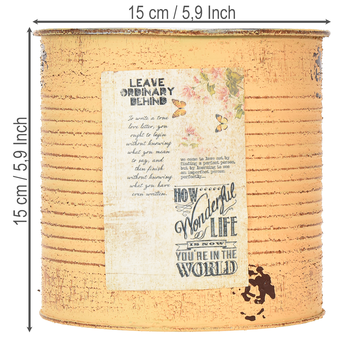 Ta starannie zaprojektowana doniczka w stylu vintage doda uroku każdemu projektowi dekoracyjnemu. Dzięki akcentom retro i malowanym efektom rdzy, te wyjątkowe doniczki tworzą przytulną atmosferę – idealną do wnętrz w stylu rustykalnym lub rustykalnym. Możliwości kombinacji są praktycznie nieograniczone – czy to jako dekoracyjna doniczka na rośliny doniczkowe, wyłożona folią, jako wazon DIY na suszone kwiaty, czy jako organizer na długopisy i drobne akcesoria. Każda doniczka ma 15 centymetrów wysokości i jest prawdziwie wielofunkcyjna.
