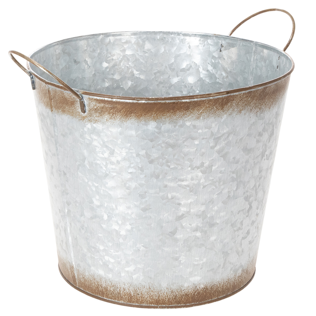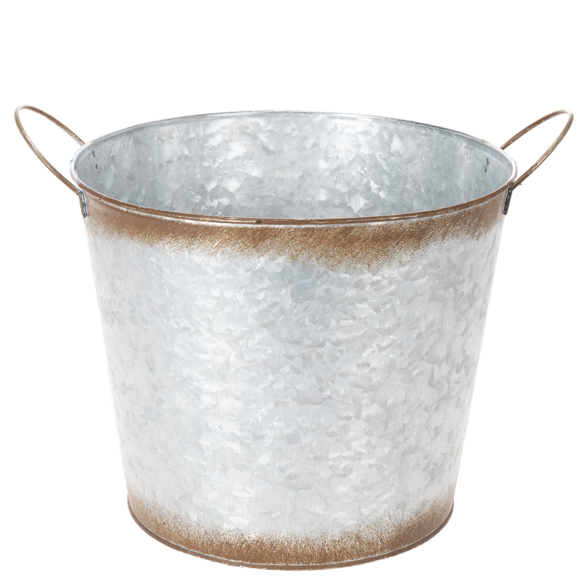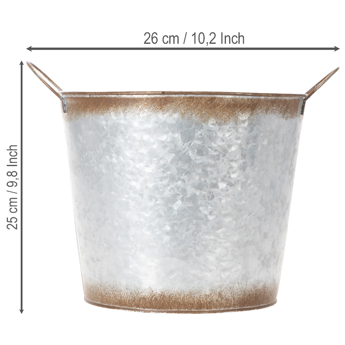 Doniczka z uchwytami, dekoracyjna misa z wykończeniem w kolorze rdzy, pojemnik metalowy w kolorze srebrnym Ø26cm H25,5cm