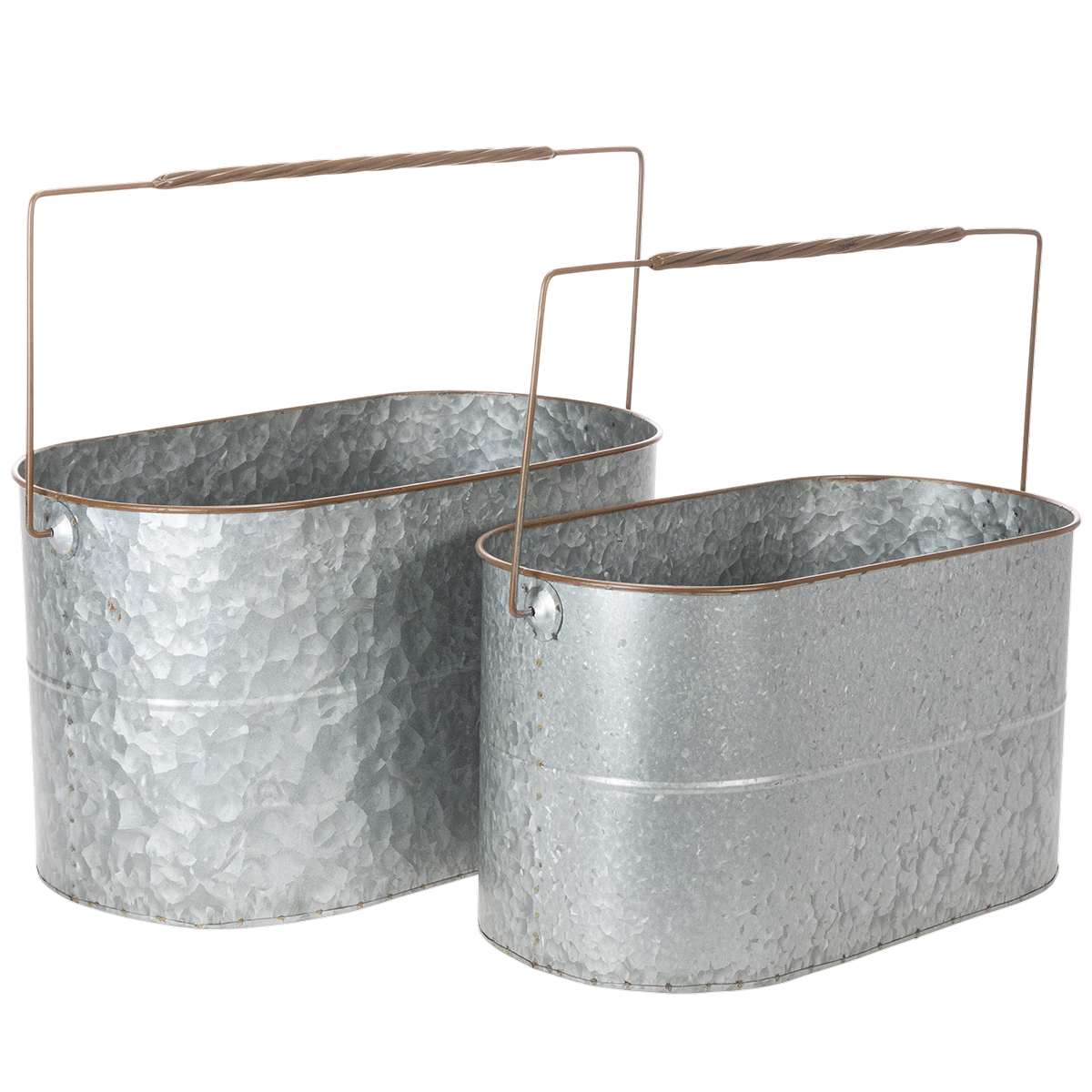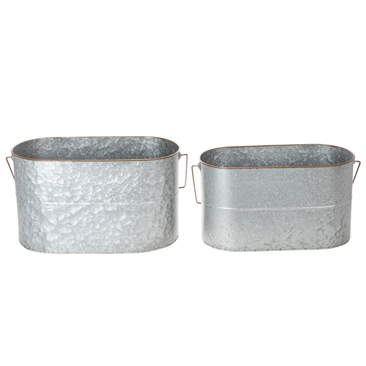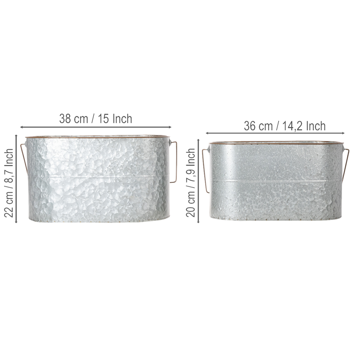 Doniczka z uchwytem, metalowa, srebrna, brązowa, wys. 22/20 cm, dł. 42/40 cm, zestaw 2 szt.