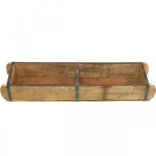 Drewniana donica z metalowymi okuciami, kształt podwójnej cegły, donica vintage L57cm