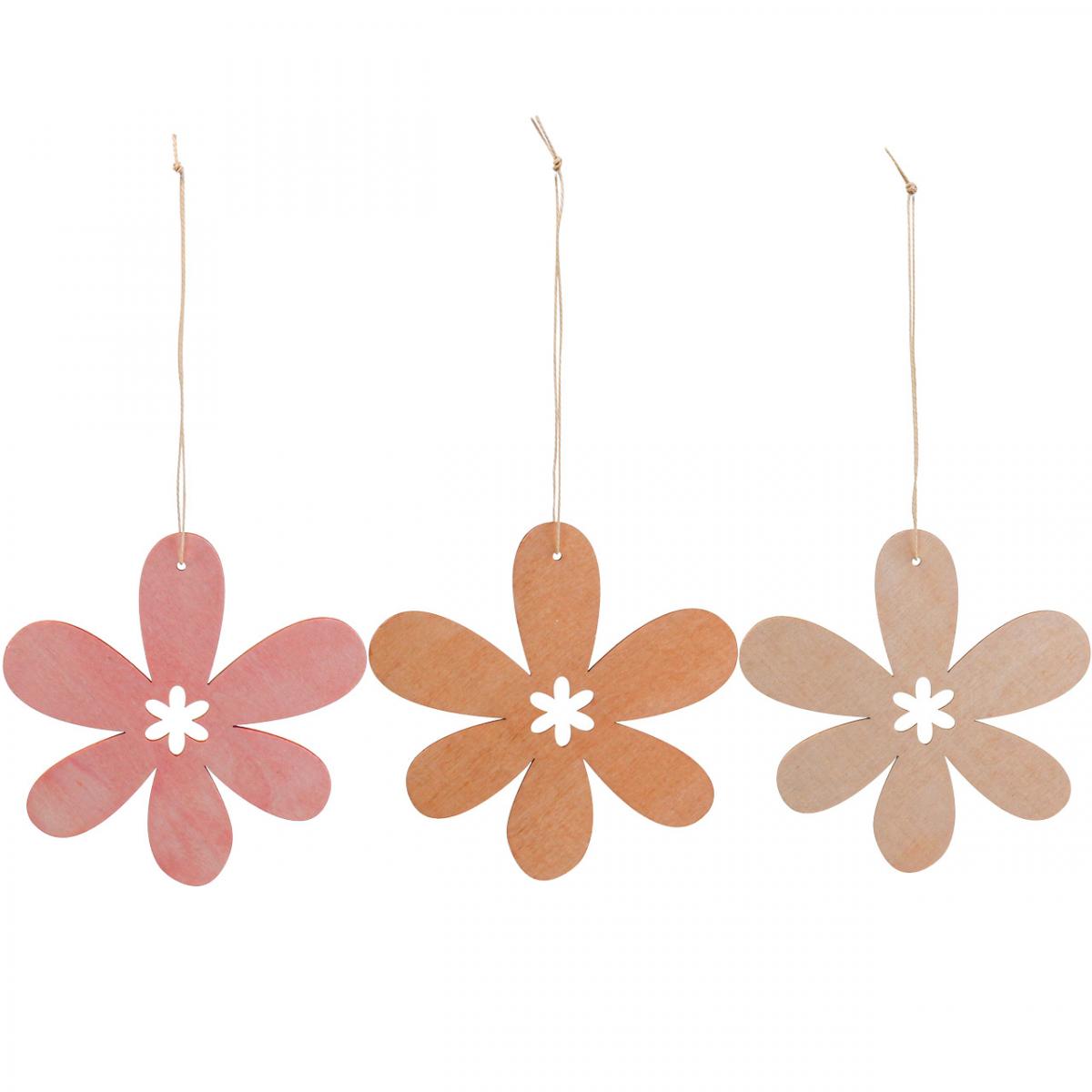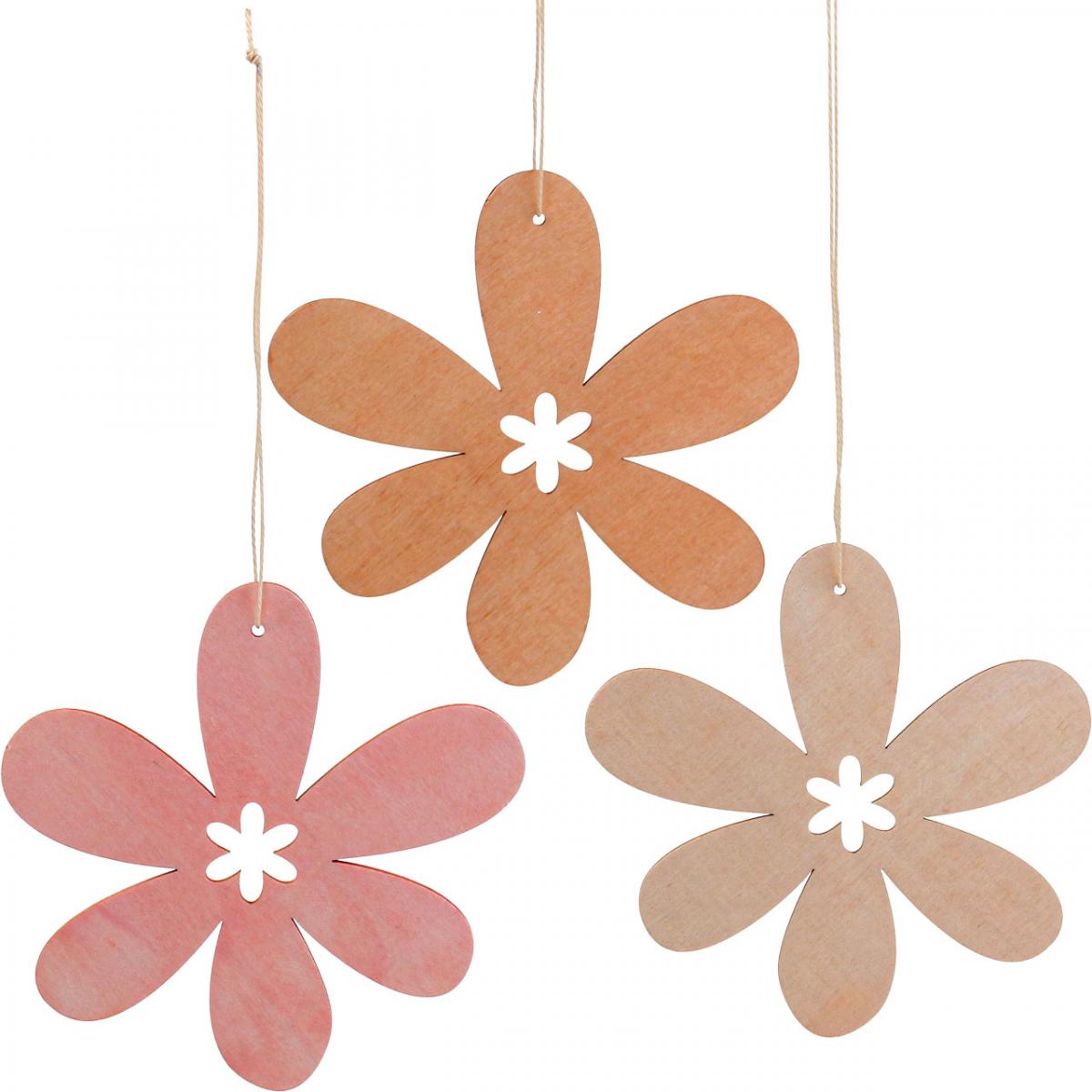 Drewniana zawieszka Deco kwiatek Drewniany kwiatek pomarańczowy/różowy/żółty 12 sztuk