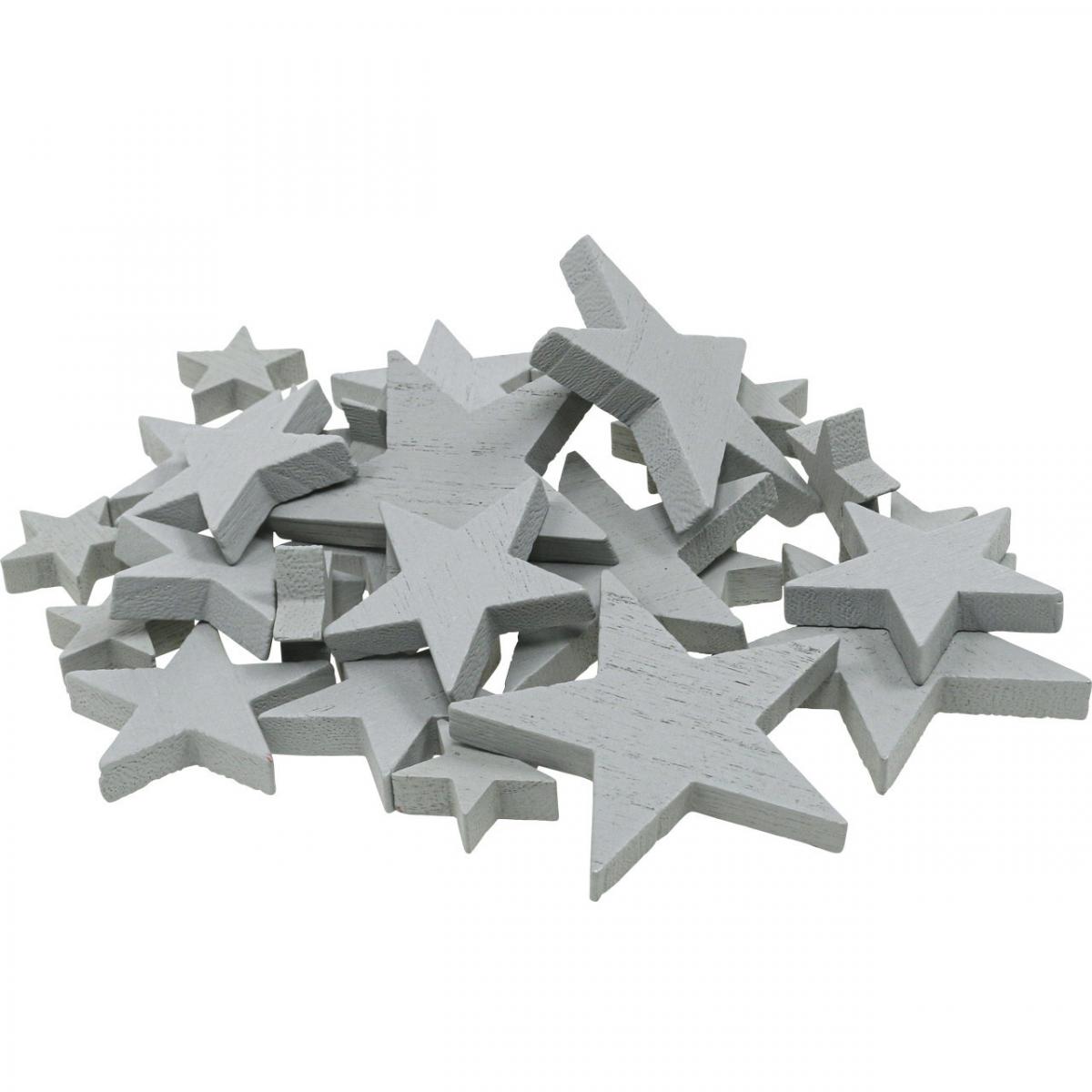 Drewniane gwiazdki dekoracja rozproszona świąteczna szara 3/5/7cm 29 szt