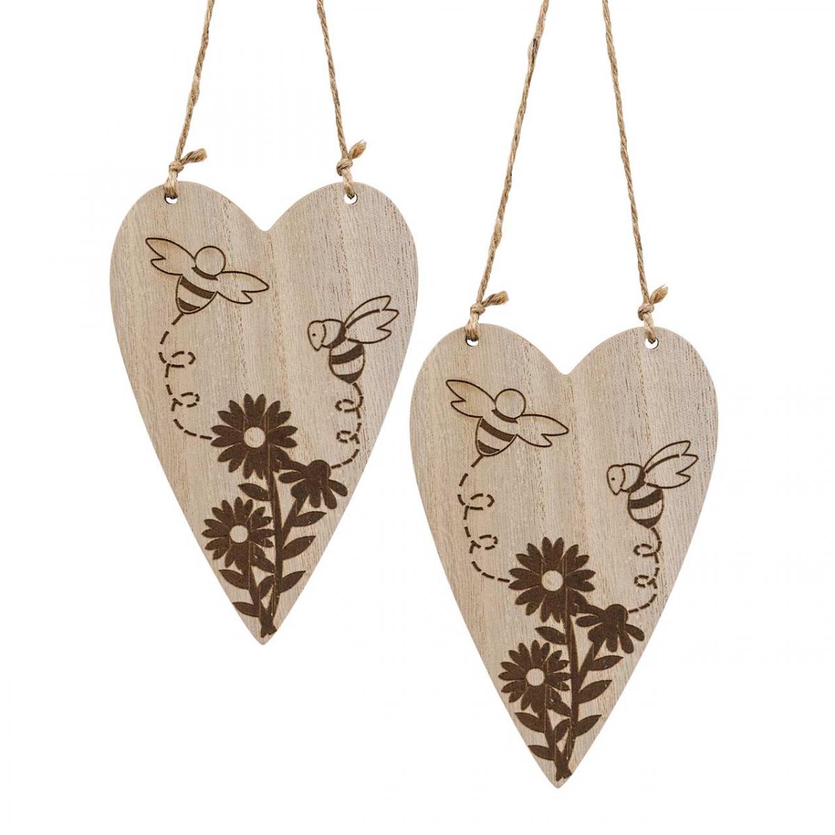 Drewniany wieszak ozdobny serca kwiaty pszczoły dekoracja 10x15cm 6szt