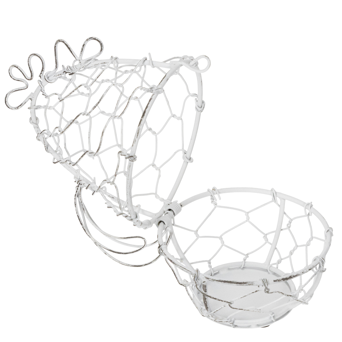 - Kształt: Uroczy druciany koszyk w kształcie kurczaka