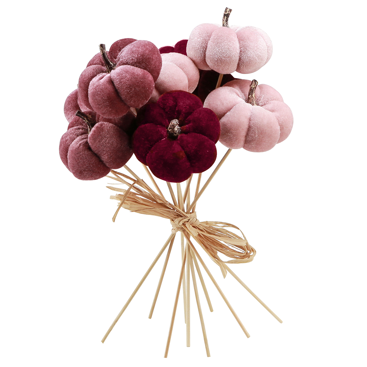 Dynia dekoracyjna z tkaniny dynia na patyku bordowo-różowa Ø7cm 9 szt