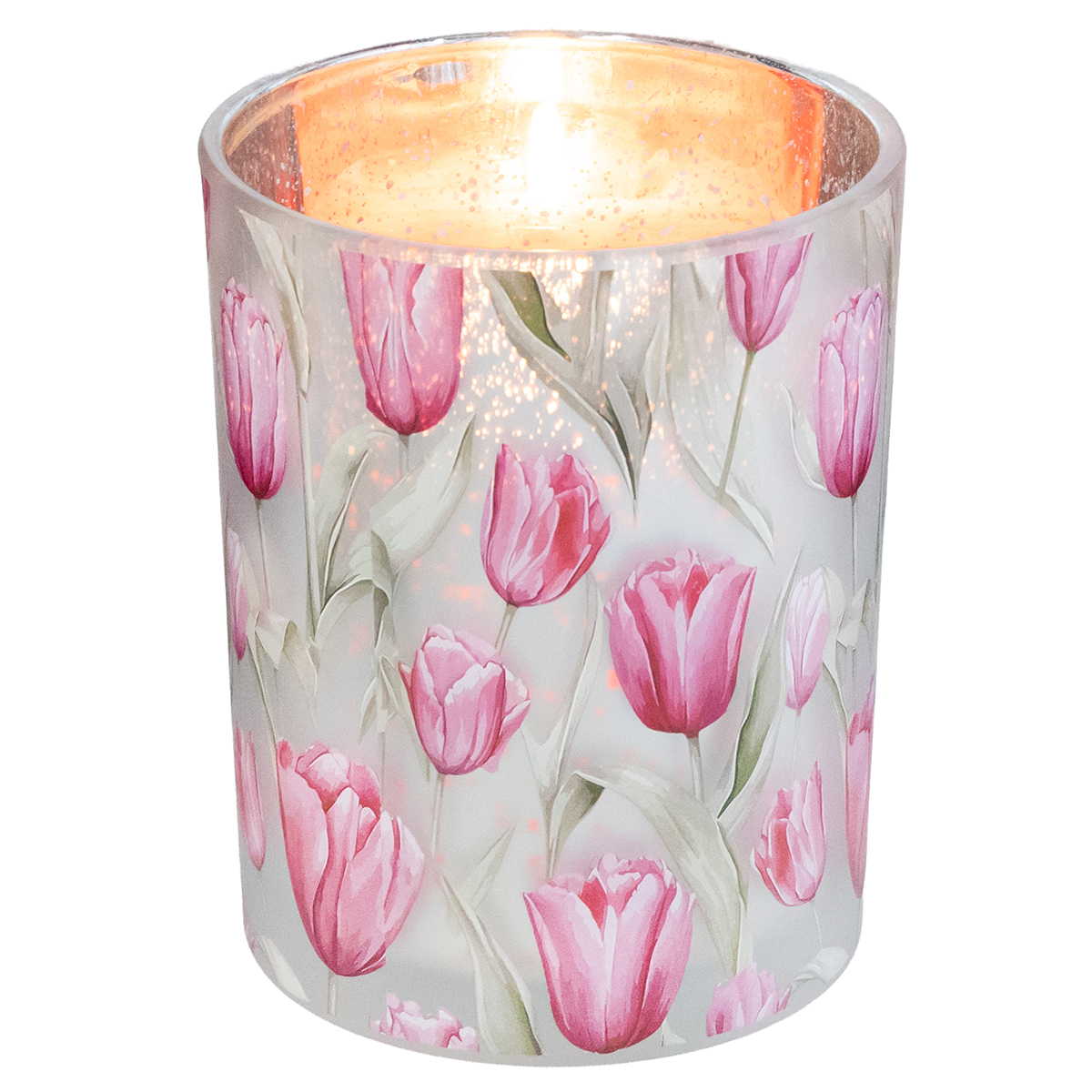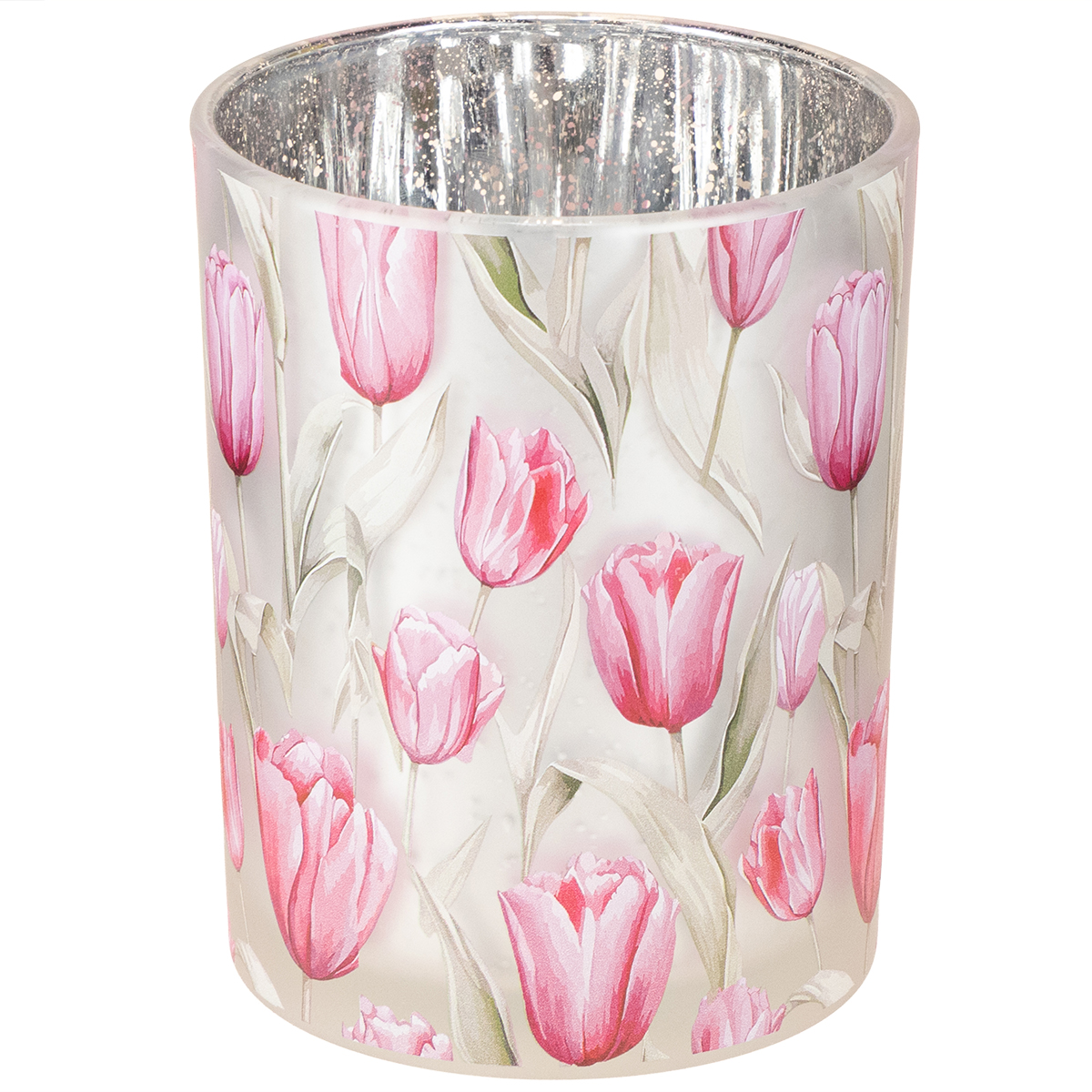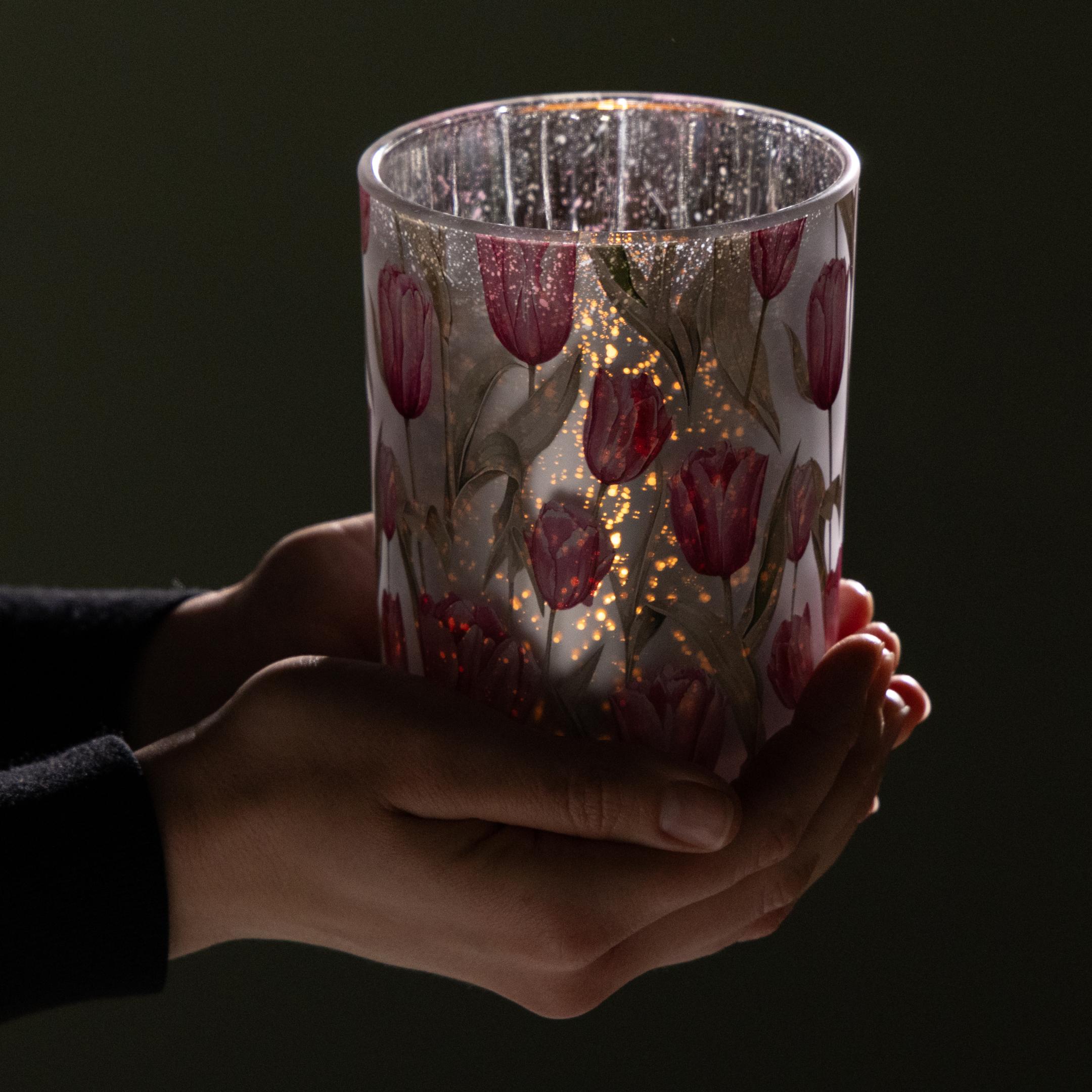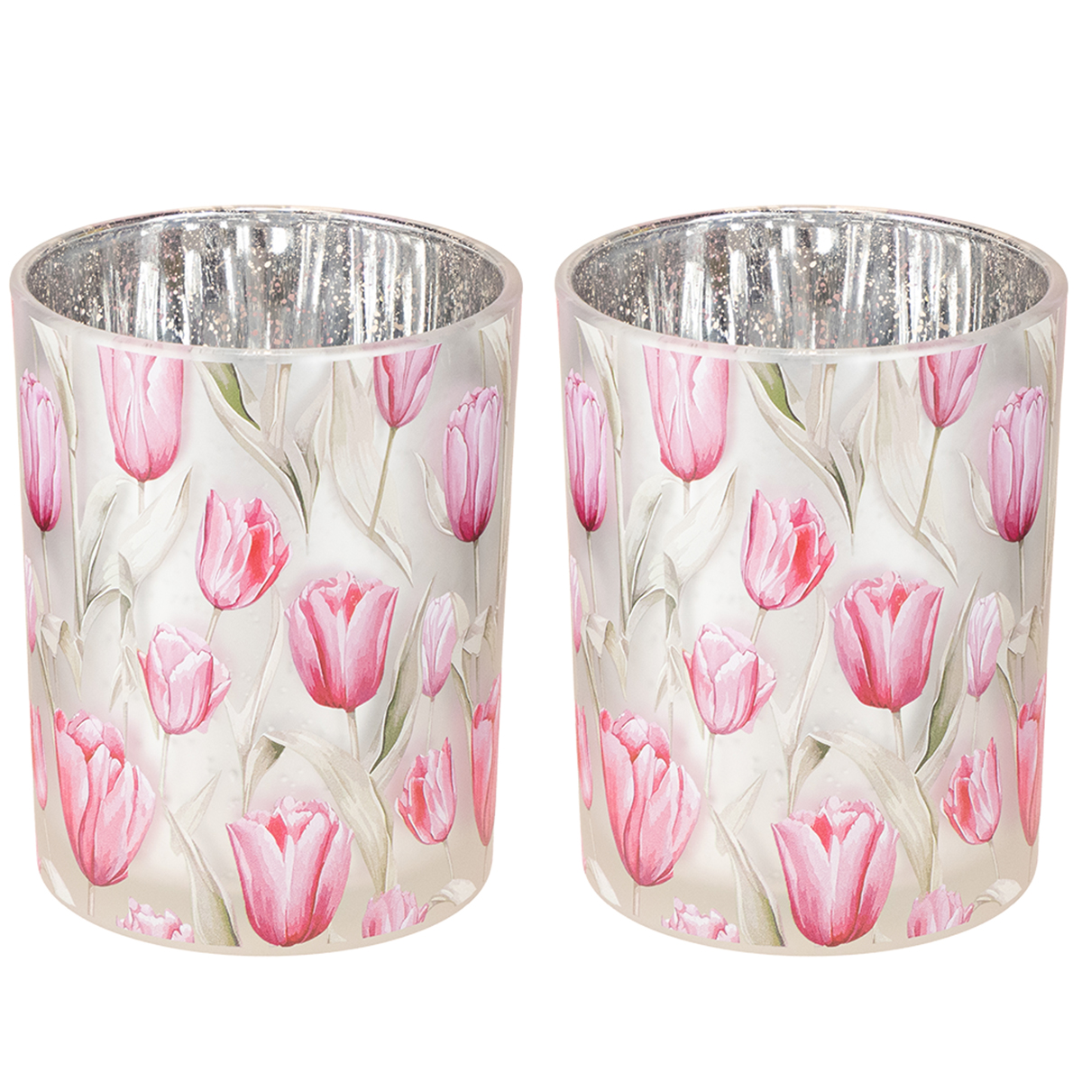 Elegancka latarenka z motywem tulipana do nastrojowej, wiosennej dekoracji, 12,5 cm, 2 sztuki.