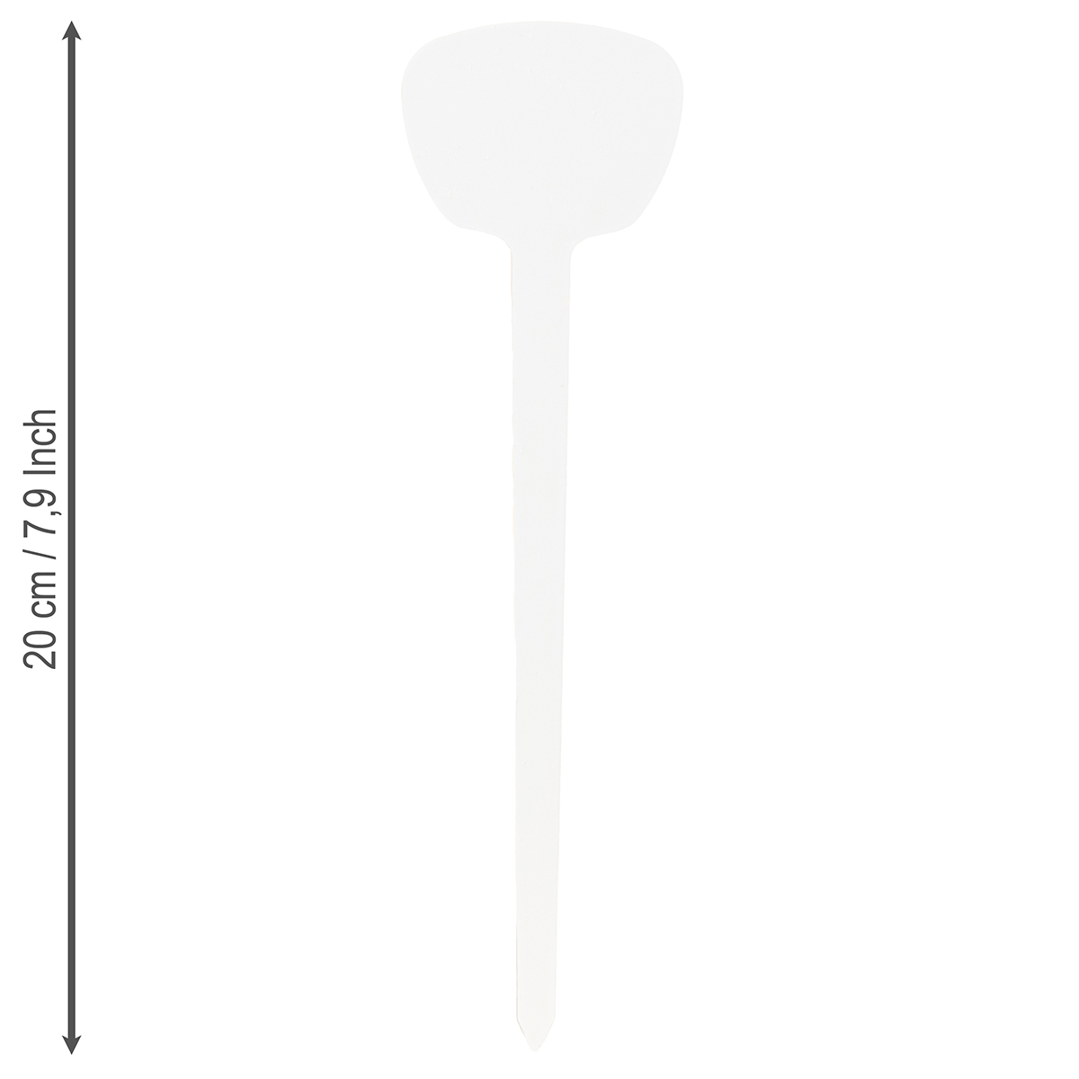 Wtyczki do etykietowania roślin wykonane są z delikatnego, ale stabilnego wymiarowo tworzywa sztucznego. Dzięki temu naklejki z kwiatami są wodoodporne i nadają się do wielokrotnego użytku. Dzięki zaostrzonemu prętowi można łatwo wcisnąć tabliczki do wbijania w ziemię doniczkową lub w grządkę.