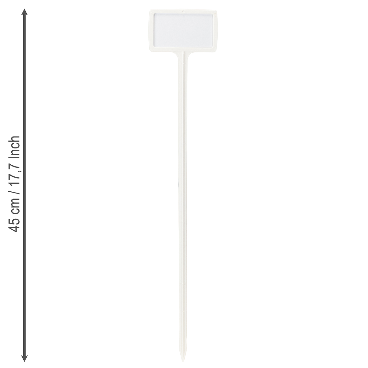 Znak wtyczki roślin do zmiany jest w sumie około 45 centymetrów długości, gdzie pręt ma długość około 40 centymetrów. Uchwyt na znak zmiany ma wymiary około 80 na 48 milimetrów. Każde opakowanie zawiera 10 wymiennych znaków do oznaczania i 10 zatyczek do kwiatów. Kwiaciarnie mogą również wspaniale wykorzystać plastikowe znaki jako zawieszki cenowe.