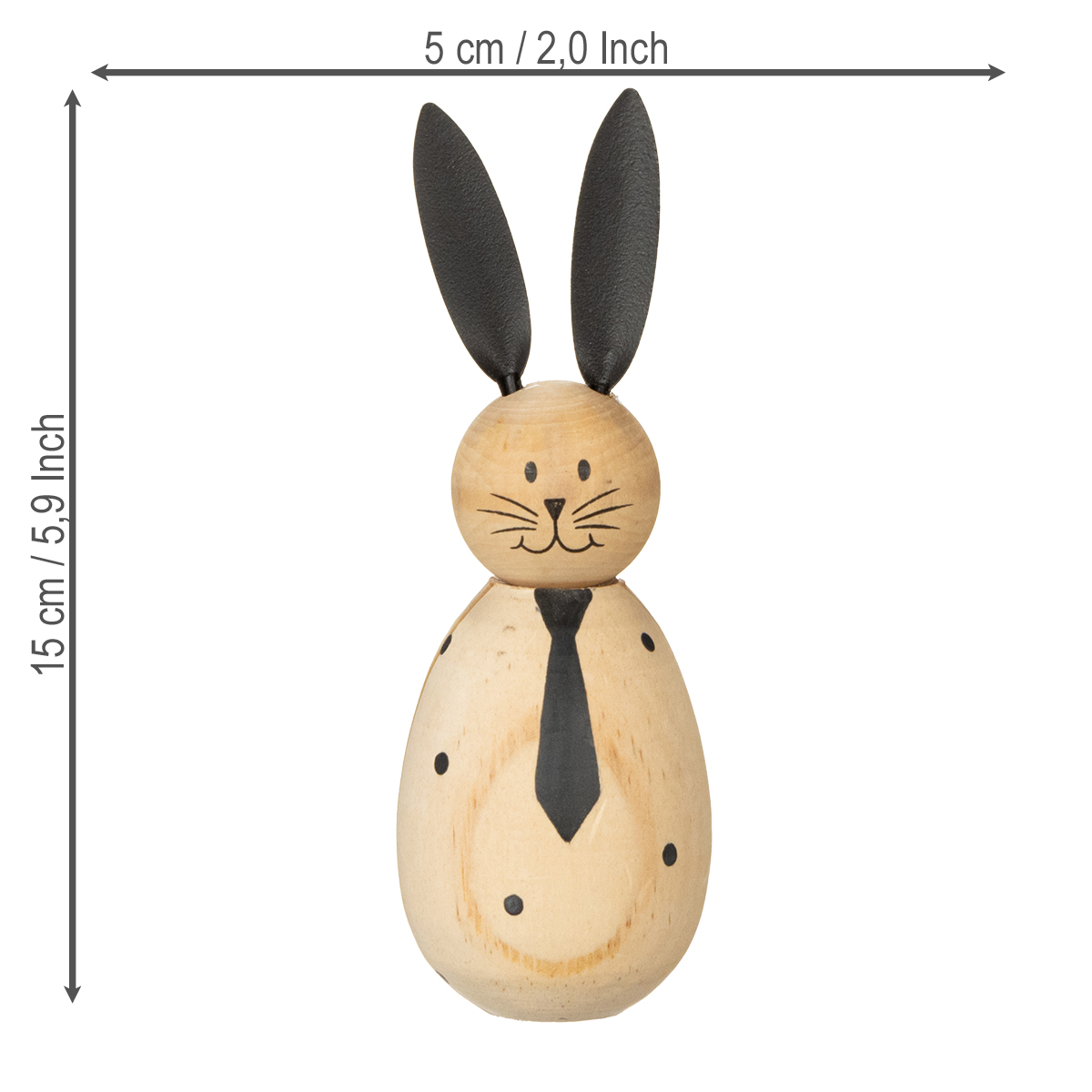 Każdy królik został wykonany z dbałością o każdy szczegół. Wykończenie imitujące drewno nadaje wnętrzom ciepłą, naturalną atmosferę, a czarne, metalowe uszy dodają nowoczesnego akcentu. Kompaktowy rozmiar 15 cm sprawia, że idealnie nadają się do mniejszych pomieszczeń dekoracyjnych, takich jak recepcja, pokój dziecięcy czy biurko. Niezależnie od tego, czy będą subtelnym akcentem, czy częścią starannie zaaranżowanej aranżacji, te króliki z pewnością zachwycą!