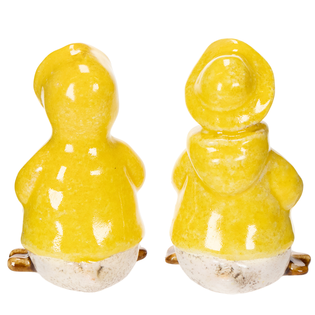 Te ceramiczne figurki kaczek w żółtych płaszczach przeciwdeszczowych są idealne dla każdego, kto chce dodać osobisty akcent do wystroju ogrodu. Jaskrawożółty kolor i urocze detale, takie jak błyszczące kalosze i urocze kaptury, dodają wyjątkowego uroku balkonom, ogrodom i kompozycjom kwiatowym. Ręcznie wykonany wzór podkreśla jakość i sprawia, że każda figurka jest unikatowa.