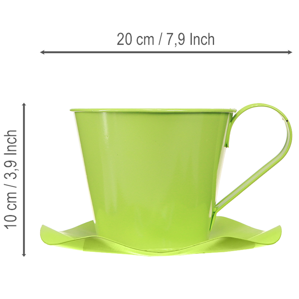 Filiżanka do herbaty metalowa dekoracyjna z talerzykiem jasnozielona Ø12 H10cm 8 szt.