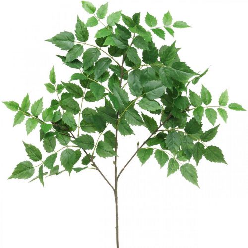 Ta gałązka liści w kolorze zielonym oferuje bogatą, świeżą zieleń dla długotrwałej dekoracji. Poszarpane liście sztucznej zielonej rośliny zachwycają drobno zaprojektowanym wzorem, małymi pąkami i realistycznie zaprojektowaną brązową gałązką. Główny pas sztucznej rośliny podzielony jest na trzy gałęzie. Szczegółowa, zielona dekoracja roślinna przypomina gałązkę brzozy.