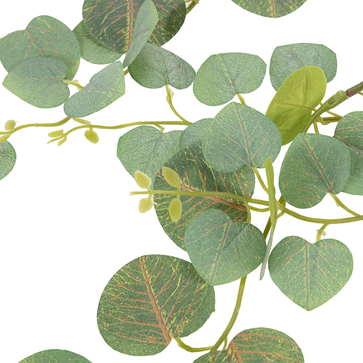 Nasza sztuczna gałązka eukaliptusa łączy piękno prawdziwych roślin z trwałością wysokiej jakości materiałów. Jej kunszt wykonania z tworzywa sztucznego gwarantuje niezwykle realistyczny wygląd liści – każdy nerw jest wiernie odwzorowany. Ta ozdobna gałązka o długości 120 cm idealnie nadaje się do dodania wysokości i głębi aranżacji stołu. Idealna do wnętrz w stylu skandynawskim, nowoczesnym lub minimalistycznym, wnosi spokój i poczucie porządku do każdego pomieszczenia.