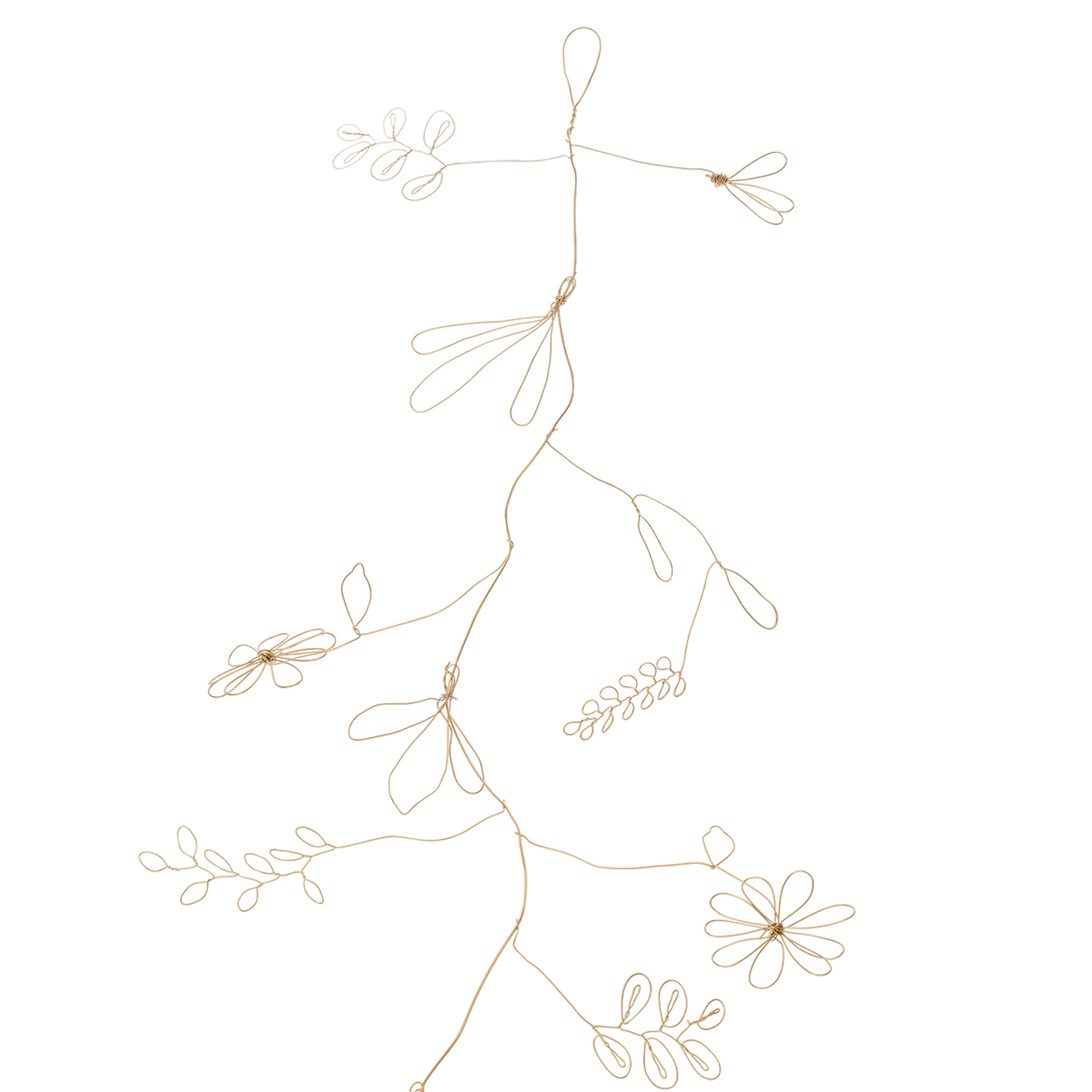 Na tym metalowym ozdobnym wieszaku rozpoczęło się lato! Pszczoły odwiedzają tu i ówdzie piękne kwiaty i winorośle, które zostały pomysłowo stworzone przy użyciu złotego drutu.