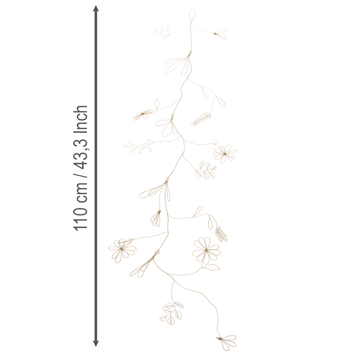 Girlanda dekoracyjna z metalowych kwiatów, drut na wianek kwiatowy, letnia dekoracja, dekoracja ścienna, złota, 110 cm