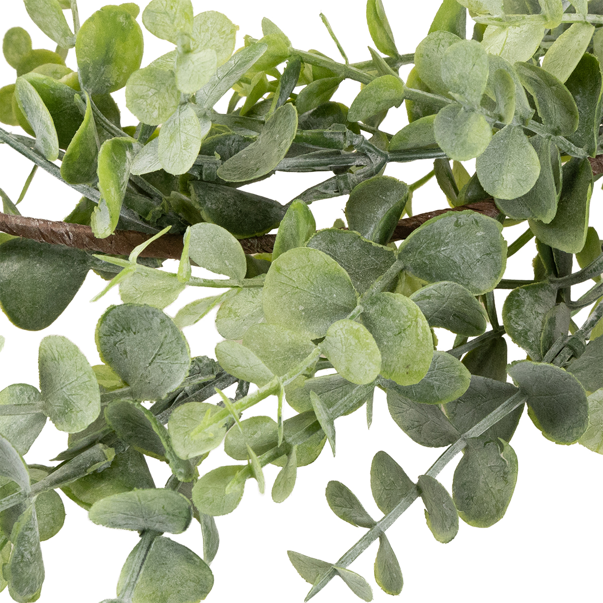 Girlanda z zielonego eukaliptusa jest wykonana z tworzywa sztucznego i ma rdzeń z drutu metalowego dla większej elastyczności. Długość ozdobnej girlandy wynosi około 150 centymetrów. Wiele małych liści ma wielkość od 1 do 2 centymetrów.