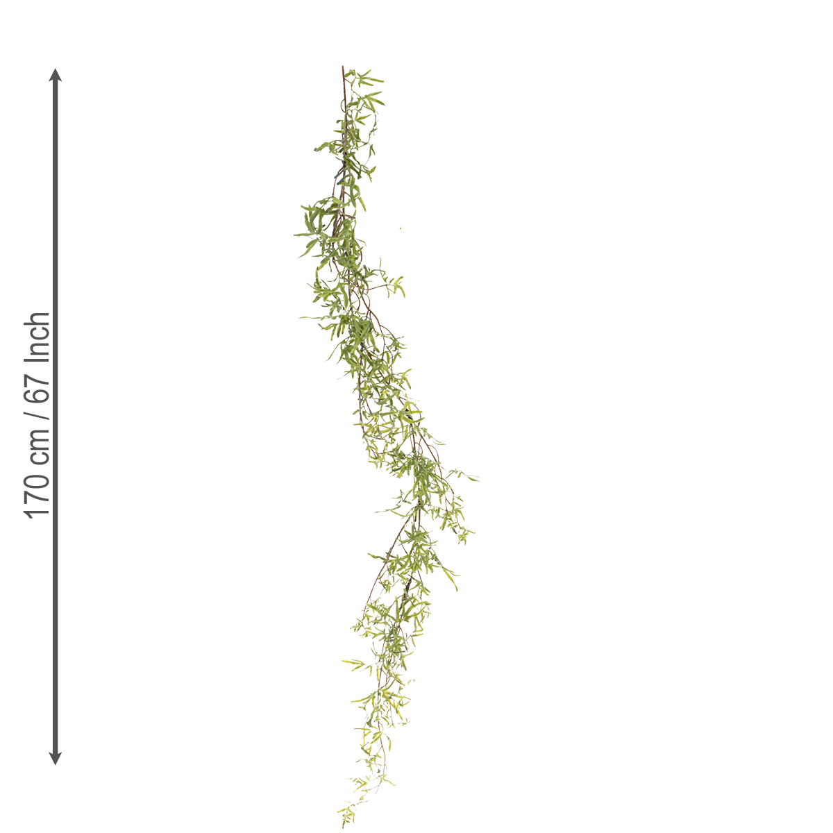 Girlanda szparagowa to prawdziwie wszechstronny element dekoracyjny. Jej smukłe, delikatne liście nadają jej zwiewnej lekkości, dzięki czemu idealnie pasuje do nowoczesnych, rustykalnych, a nawet klasycznych wnętrz. Mając 170 cm długości, oferuje mnóstwo możliwości kreatywnych pomysłów: jako dekoracja stołu, do owijania balustrad, czy jako nastrojowa rama drzwi i okien. Wykonana z wytrzymałego tworzywa sztucznego, sztuczna girlanda lśni świeżym zielonym odcieniem, który do złudzenia przypomina prawdziwy. Jest trwała, łatwa w czyszczeniu i pozostaje w idealnym stanie przez długi czas. Idealna dla każdego, kto ceni sobie stylową, a zarazem łatwą w utrzymaniu dekorację. Aby uzyskać wyjątkowo harmonijny wygląd, można ją połączyć z kwiatami lub lampkami choinkowymi LED. To dopełnia całości i tworzy jeszcze bardziej świąteczną atmosferę. Ta girlanda to prawdziwa atrakcja, zwłaszcza na weselach, przyjęciach lub imprezach plenerowych. Pomyśl o niej jako o romantycznym łuku na ceremonii lub stylowej bordiurze bufetów. Pasuje wszędzie tam, gdzie liczy się elegancja i naturalność – i to bez większego wysiłku. Po ustawieniu pozostaje stabilny i przyciąga wiele zachwycających spojrzeń.