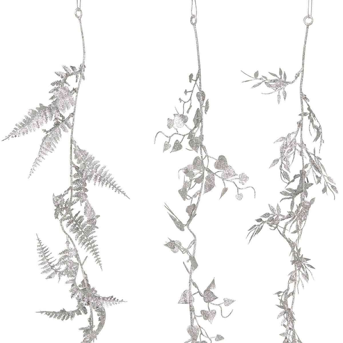 Girlanda sztuczna srebrna brokatowa girlanda z liści paproci 180cm 3 szt