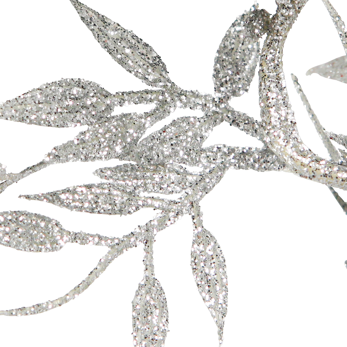 Nasza srebrna zawieszka to must-have dla każdego, kto przy niewielkim wysiłku chce osiągnąć maksymalny efekt. Świąteczna srebrna girlanda łączy delikatne liście paproci z błyszczącym brokatem, co nadaje jej efektowny wygląd i dlatego idealnie komponuje się ze stylizacjami nowoczesnymi i glamour.