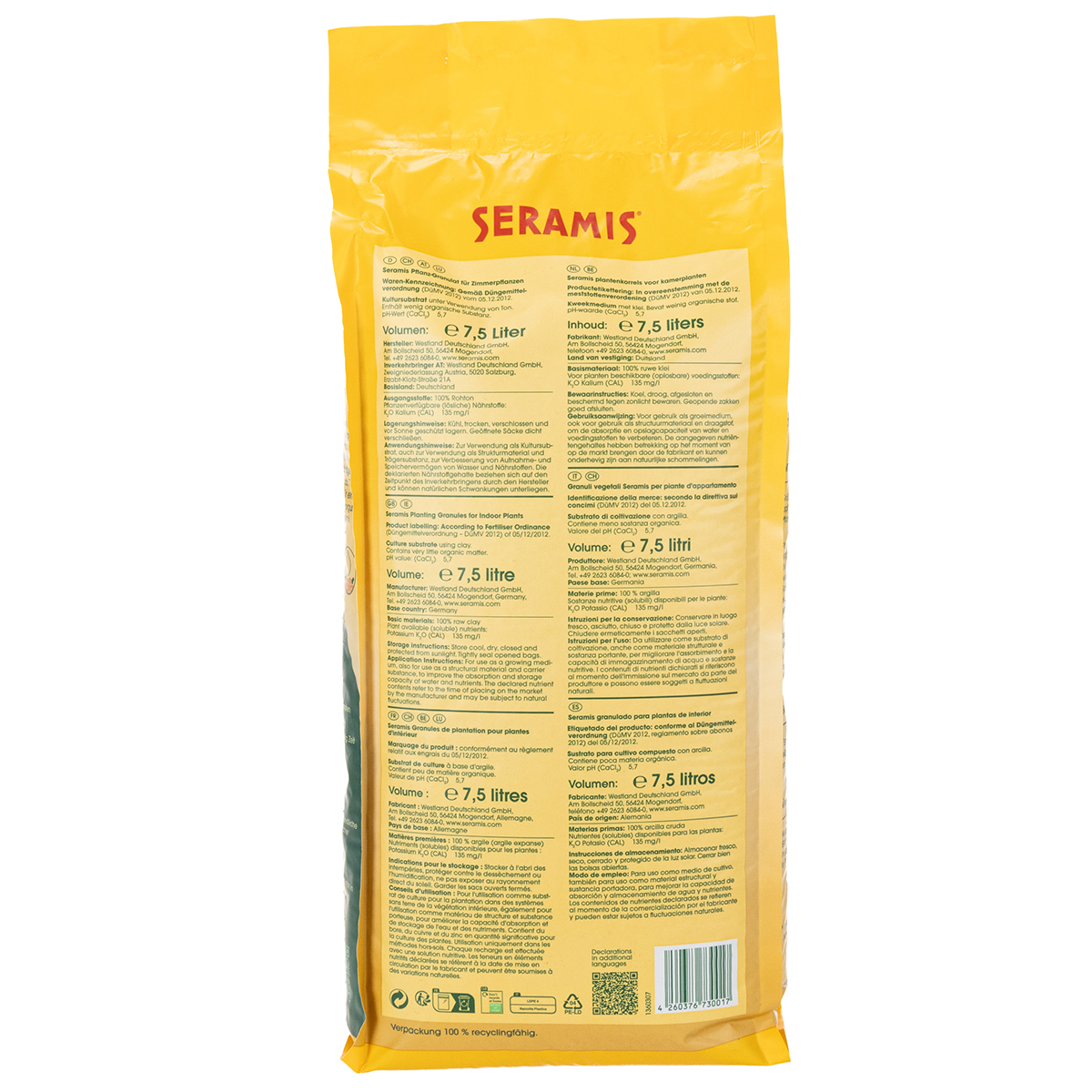 Duży worek granulek roślinnych Seramis® do roślin domowych ma objętość 7,5 litra. Niech Twoje rośliny doniczkowe rozwijają się zdrowo i okazale. Twoje rośliny będą Ci wdzięczne!