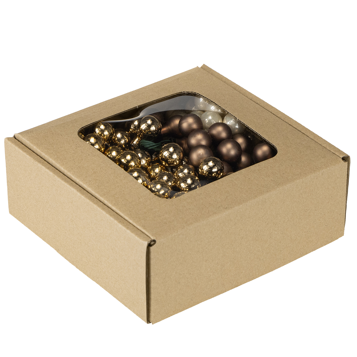Lustrzane jagody w kolorze brązowo-złotym są w zestawie 140 sztuk o łącznej ilości 4 różnych kolorów w równych częściach: Old Gold, White i Greenish Brown w wersji błyszczącej oraz Fawn w wersji matowej. Małe szklane główki mają średnicę około 1,5 centymetra, a łącznie z zielonym drutem około 15 centymetrów.