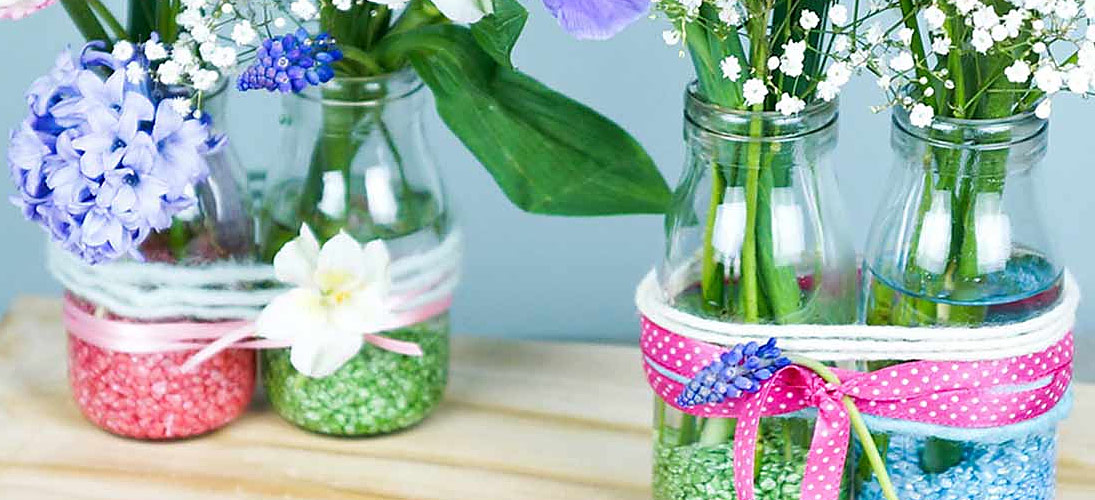 Napełnione szklanymi słoikami wspaniałe efekty można osiągnąć dzięki kolorowemu piaskowi. Przy odrobinie wprawy można tworzyć nietypowe wzory z różnych warstw kolorów.