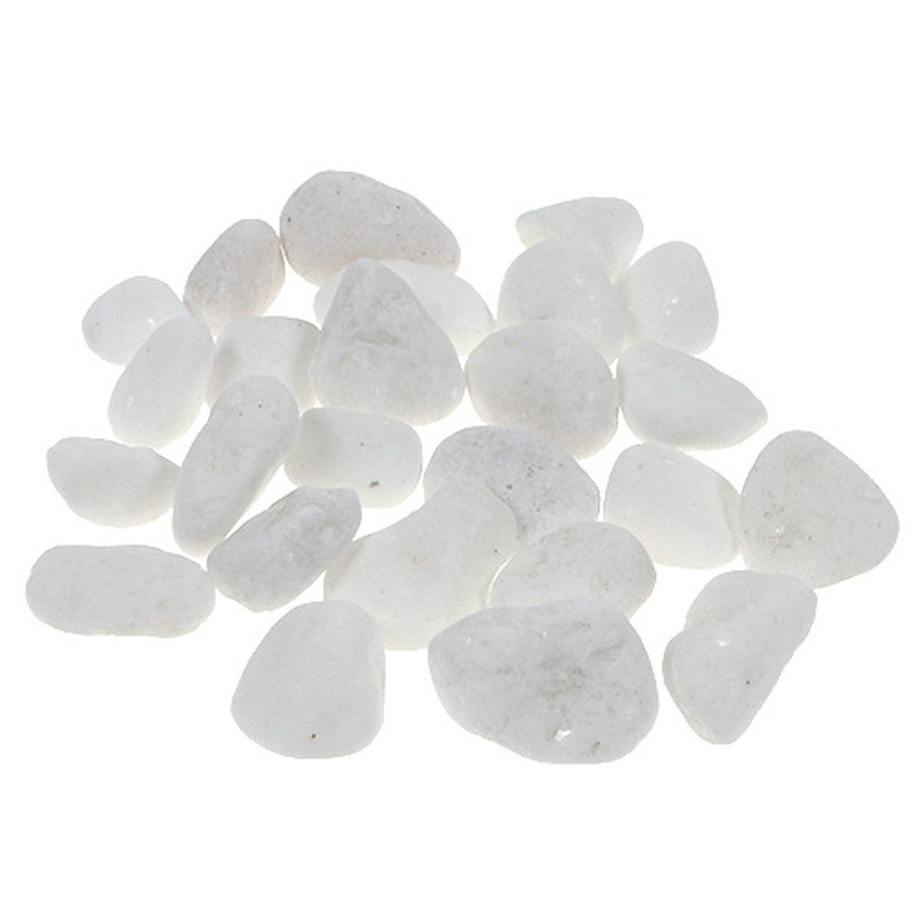 Kamyczki ozdobne w kolorze białym dostarczane są w siatce, a całość waży około 1 kilograma. Każdy kamień został indywidualnie uformowany przez naturę i dlatego mogą mieć rozmiar od 1 do 2,5 centymetra.