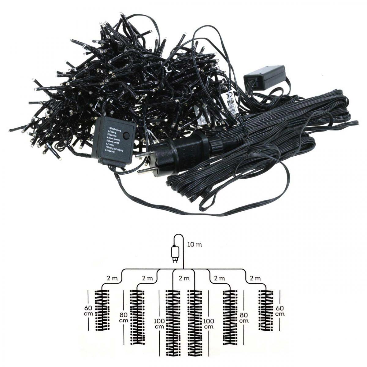 Długość pasm wynosi około 2 metry każda. Poszczególne łańcuchy LED są wykonane z bardzo elastycznego drutu pokrytego tworzywem sztucznym i są łączone w wiązkę do transportu. Przewód do wtyczki ma około 10 metrów.
