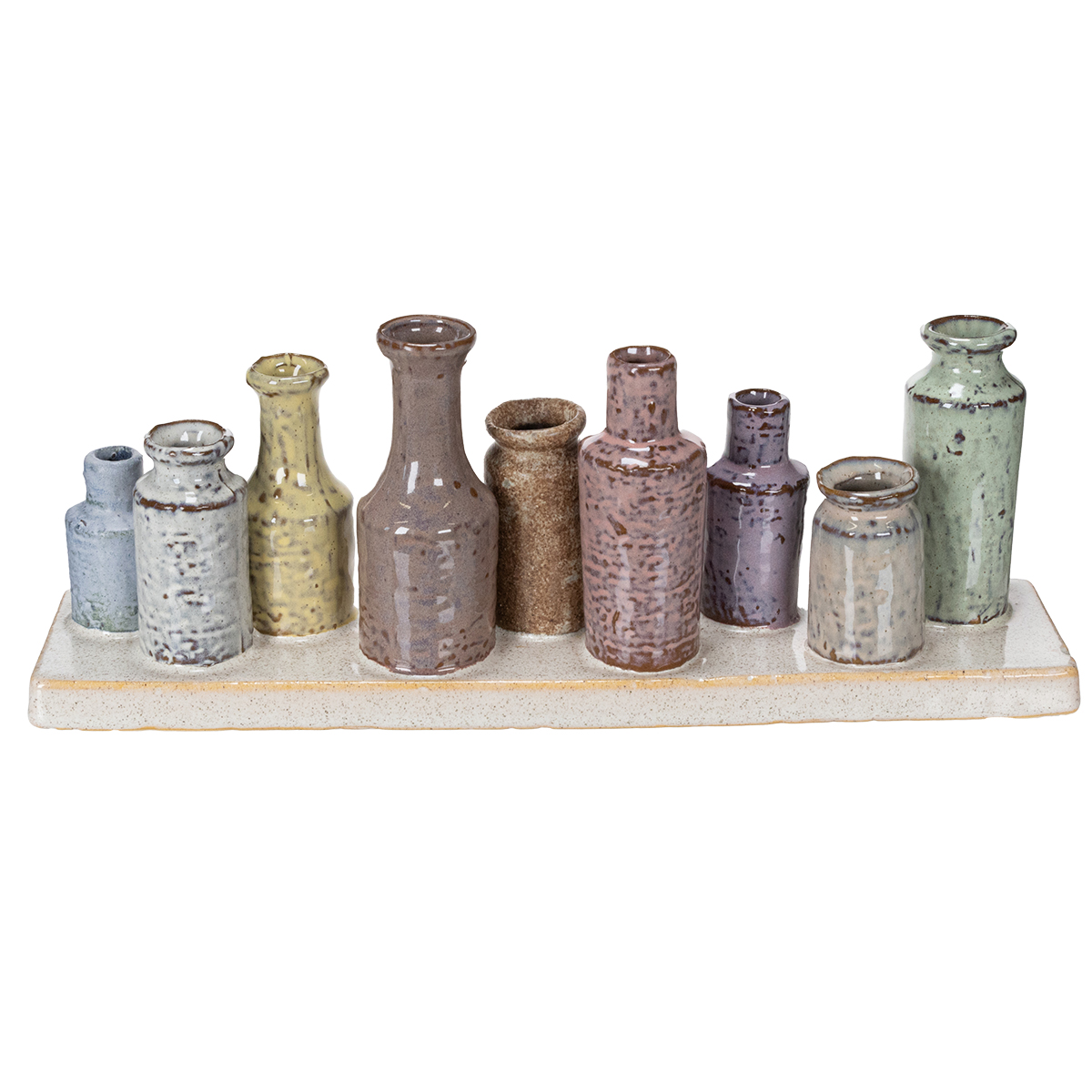 - 9 małych, ręcznie wykonanych ceramicznych wazonów w dopasowanych kolorach