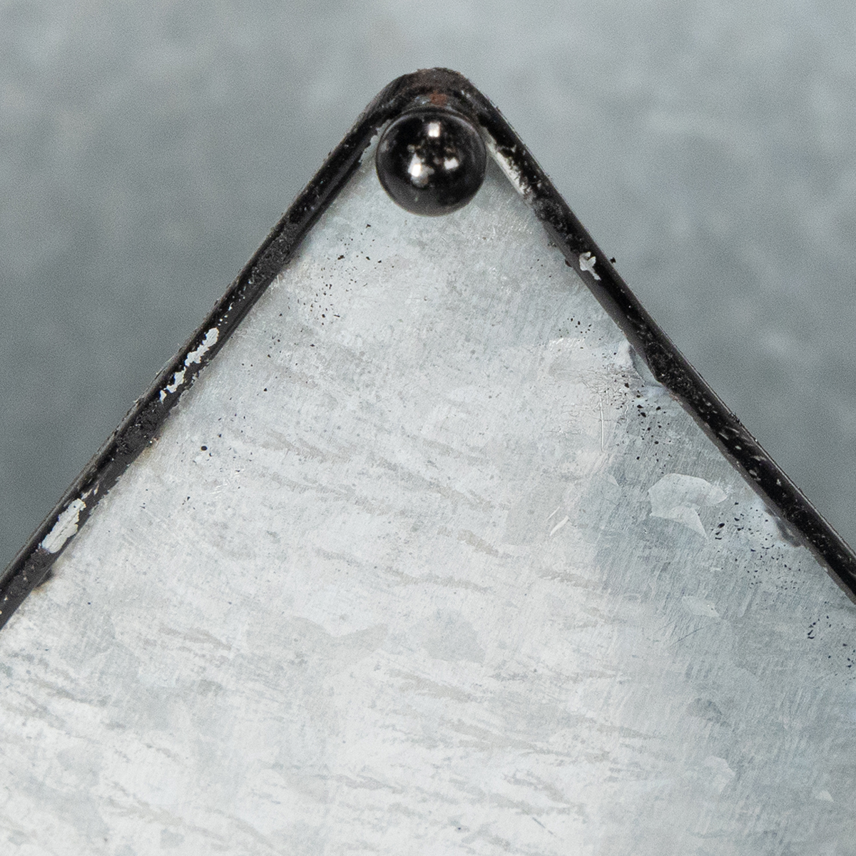Na każdym z kolców znajduje się również czarna kula. Ozdobne kulki dodają całemu doniczce w kształcie korony nieco bardziej eleganckiej. Cynkowa donica o stożkowym kształcie, zwęża się ku wewnętrznej podstawie. Typowy wzór z blachy nadaje koronie metaliczny połysk od wewnątrz i na zewnątrz.