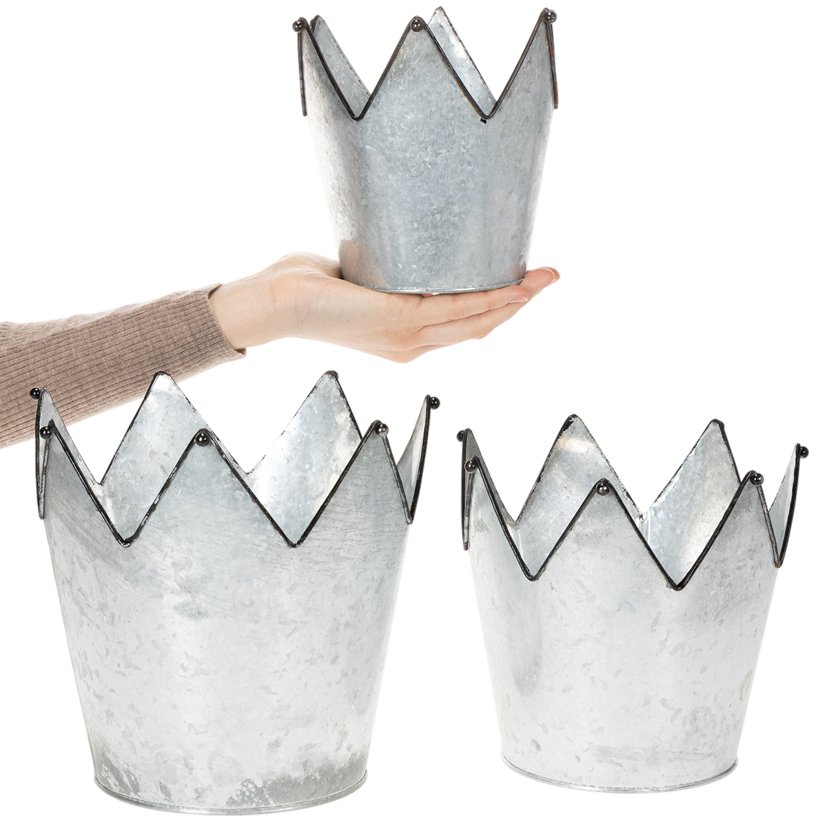 Korona do doniczki metalowa dekoracyjna cynkowa Ø21,5/19,5/17cm zestaw 3 szt.