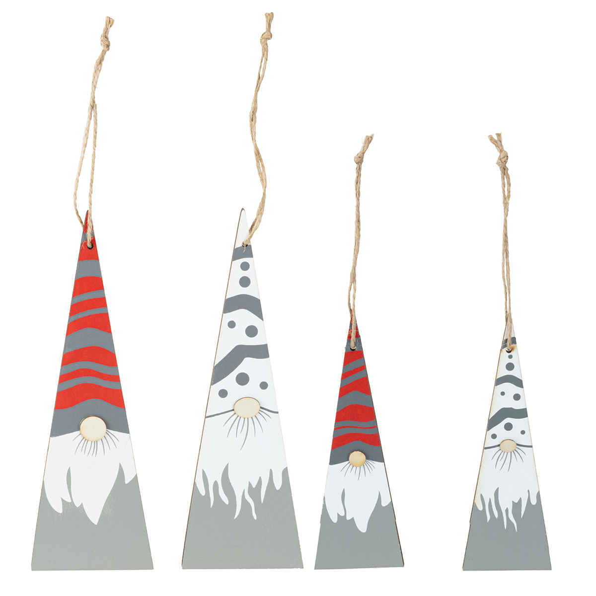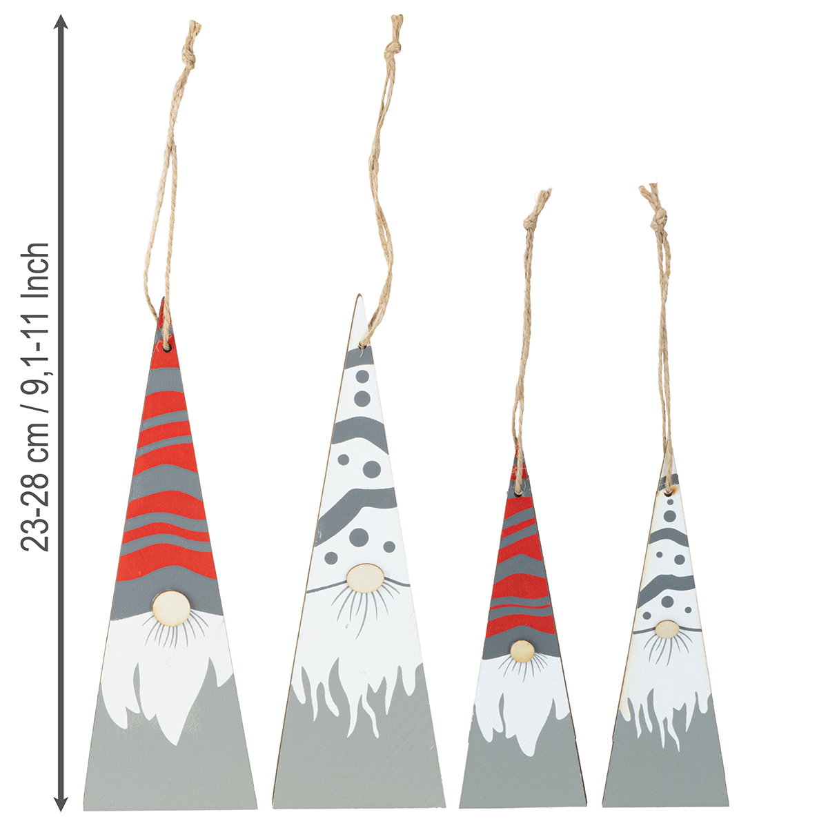 Nazwa produktu: Krasnale świąteczne drewniane do zawieszenia szaro-czerwone 15/19,5cm 8 szt.