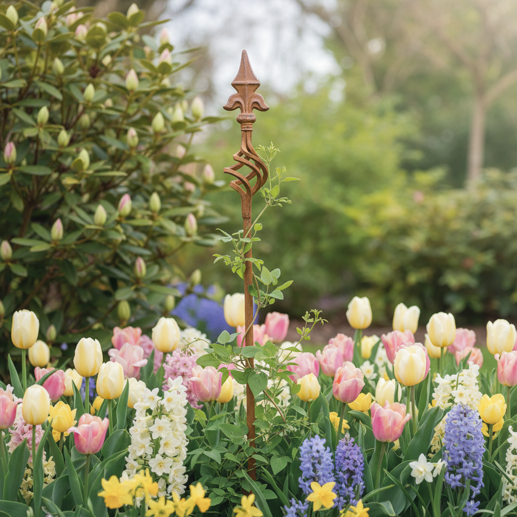 Palik ogrodowy jako pomoc do wspinania się, stylowa dekoracja ogrodu z elementem dekoracyjnym