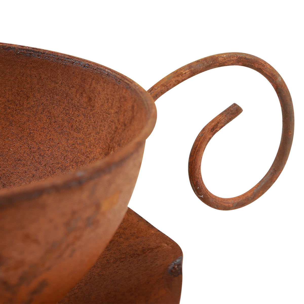 Ale dekorację ogrodową o wyglądzie rdzy można również interpretować jako filiżankę ze spodkiem. Z pewnością zyskasz oryginalną dekorację balkonu lub dekorację stołu na tarasie z doniczką!