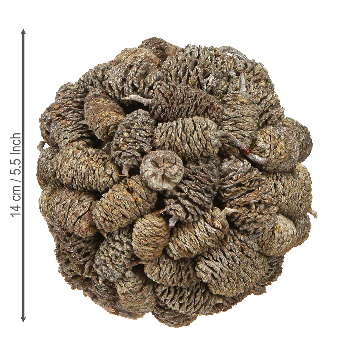 Wprowadź zimę do swojego domu – a raczej na choinkę! Ta bombka wykonana z bielonych szyszek olchy doda Twojemu wystrojowi cudownie naturalnego akcentu. Niezależnie od tego, czy będzie to wyjątkowa ozdoba na choince, stylowy dodatek do zimowego wystroju, czy też świąteczny akcent na wieńcach pamiątkowych – ten wyjątkowy, naturalny element dekoracyjny zawsze stworzy przytulną atmosferę. Subtelny, biały połysk na czarujących szyszkach olchy wniesie zimowy klimat wprost do Twojego domu.
