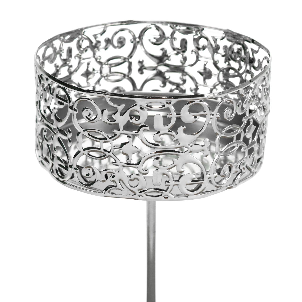 Cztery świeczniki wykonane z metalu w kolorze srebrnym z długim szpikulcem wygodnie wcisnąć w styropian, słomiany pierścień lub w ziemię. Piękne świeczniki zapraszają do różnorodnego, kreatywnego projektowania kompozycji kwiatowych i wieńców. Szczególnie jako romantyczna dekoracja ślubna i do dekoracji w okresie przedświątecznym, świeczniki są bardzo odpowiednie!