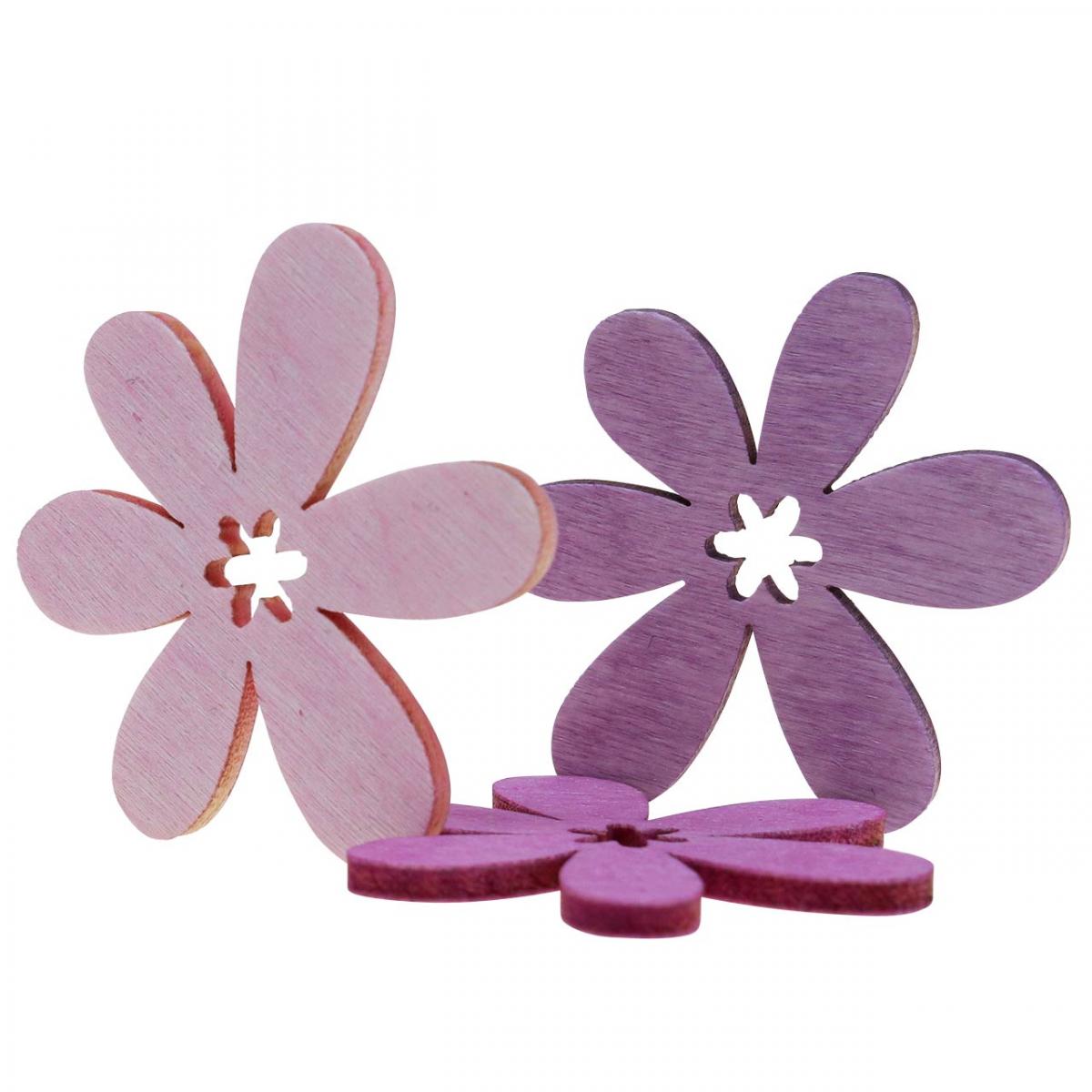 Kwiaty drewniane rozproszone dekoracje kwiaty drewniane fioletowe/fioletowe/różowe Ø4cm 72 szt