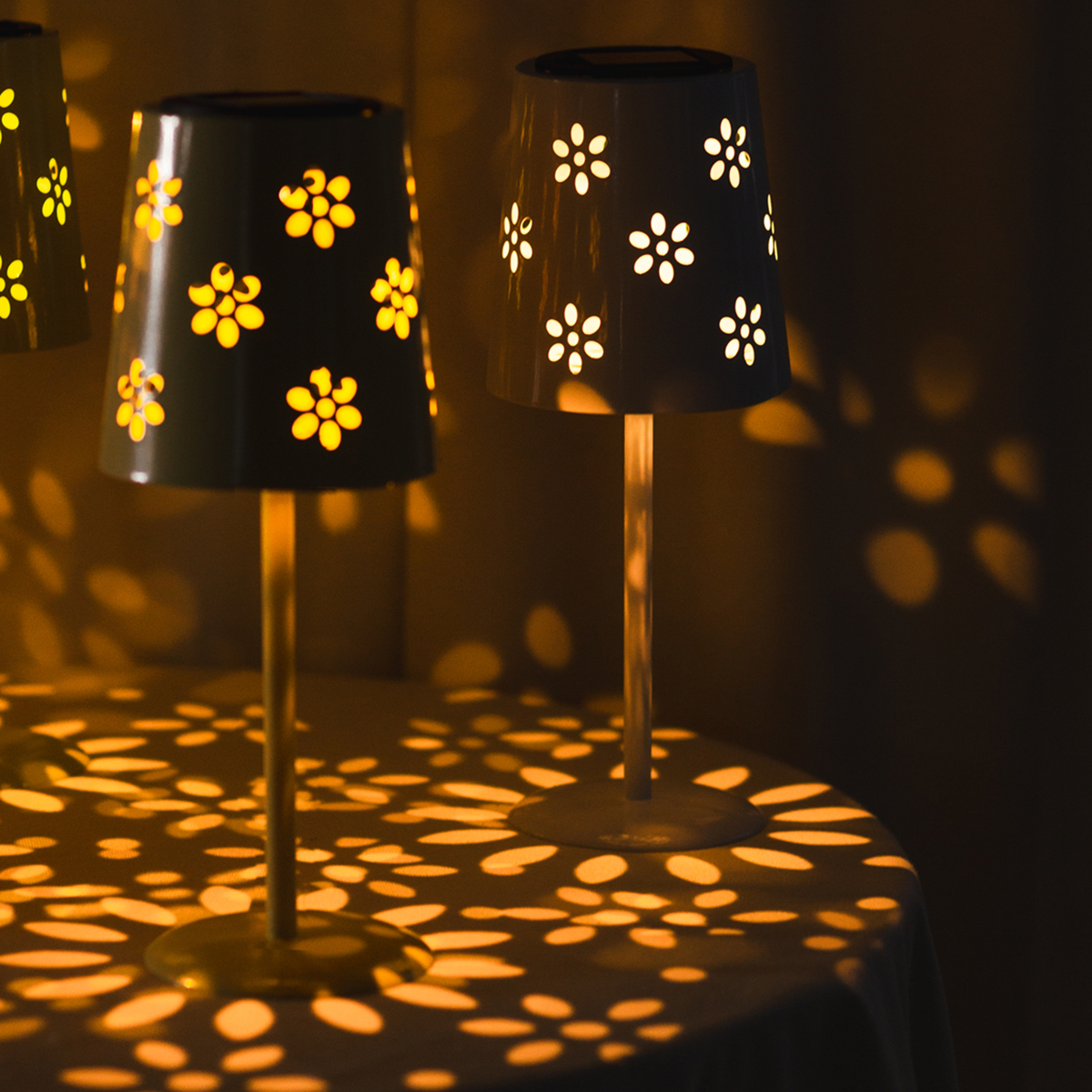 Lampa stołowa zasilana energią słoneczną z diodami LED – nastrojowe oświetlenie w kwiatowym wzorze