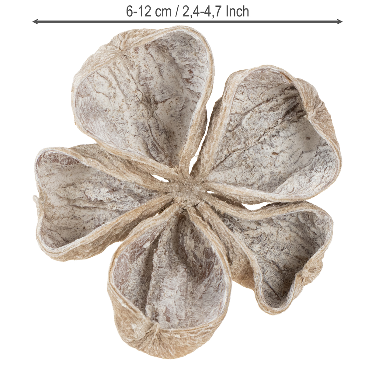 Landlotus, umyty w kolorze białym, dostarczany jest w worku o łącznej ilości 50 sztuk. Każda główka kwiatu jest produktem naturalnym, co oznacza, że mogą występować różnice w fakturze wynikające z natury. Dzięki temu pojedyncze suszone kwiaty mają wielkość od 6 do 12 centymetrów.