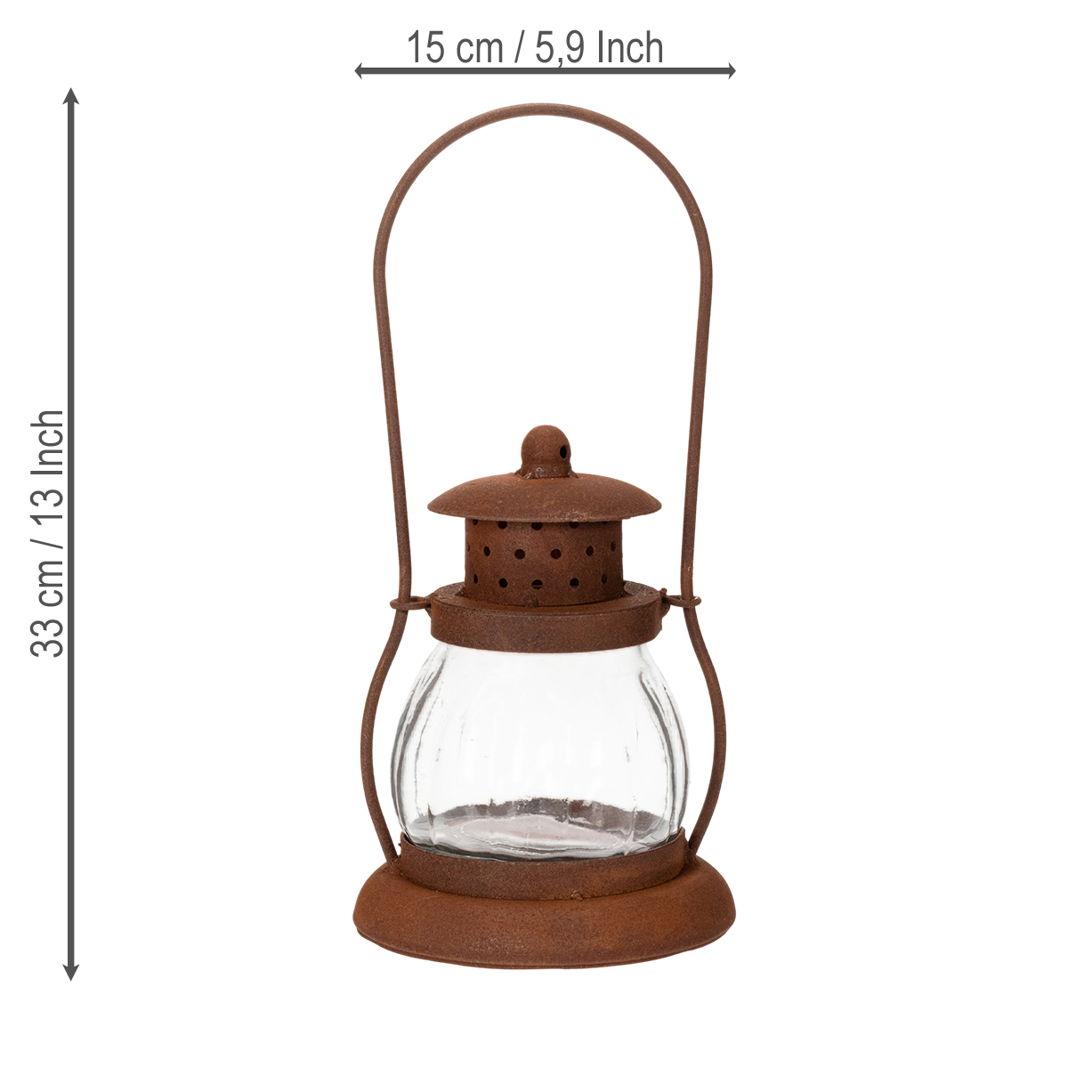 Tęsknisz za ciepłą, przyjazną atmosferą w swoim domu lub ogrodzie? Wyobraź sobie, jak ta rustykalna latarnia, wykonana z prawdziwego metalu i szkła, wypełnia przestrzeń delikatnym, migoczącym blaskiem świec. Niezależnie od tego, czy będzie ozdobą patio, nastrojowym oświetleniem ogrodowych przyjęć, czy też przytulną ozdobą stołu podczas romantycznej kolacji, ta latarnia z pewnością stanie się centralnym punktem. Po prostu ponadczasowo piękna! Dzięki swojemu vintage'owemu wzornictwu w eleganckim, rdzawobrązowym kolorze harmonijnie wkomponuje się w każdą aranżację, niezależnie od tego, czy będzie to styl rustykalny, boho, czy rustykalny. Prawdziwy must-have dla miłośników stylowych dekoracji!