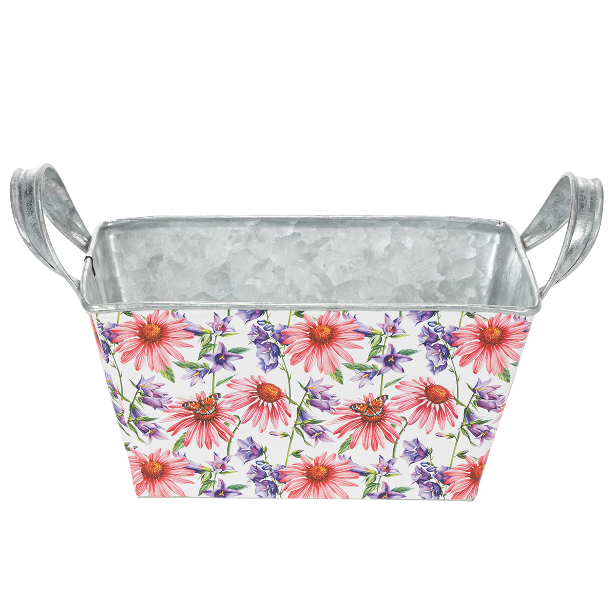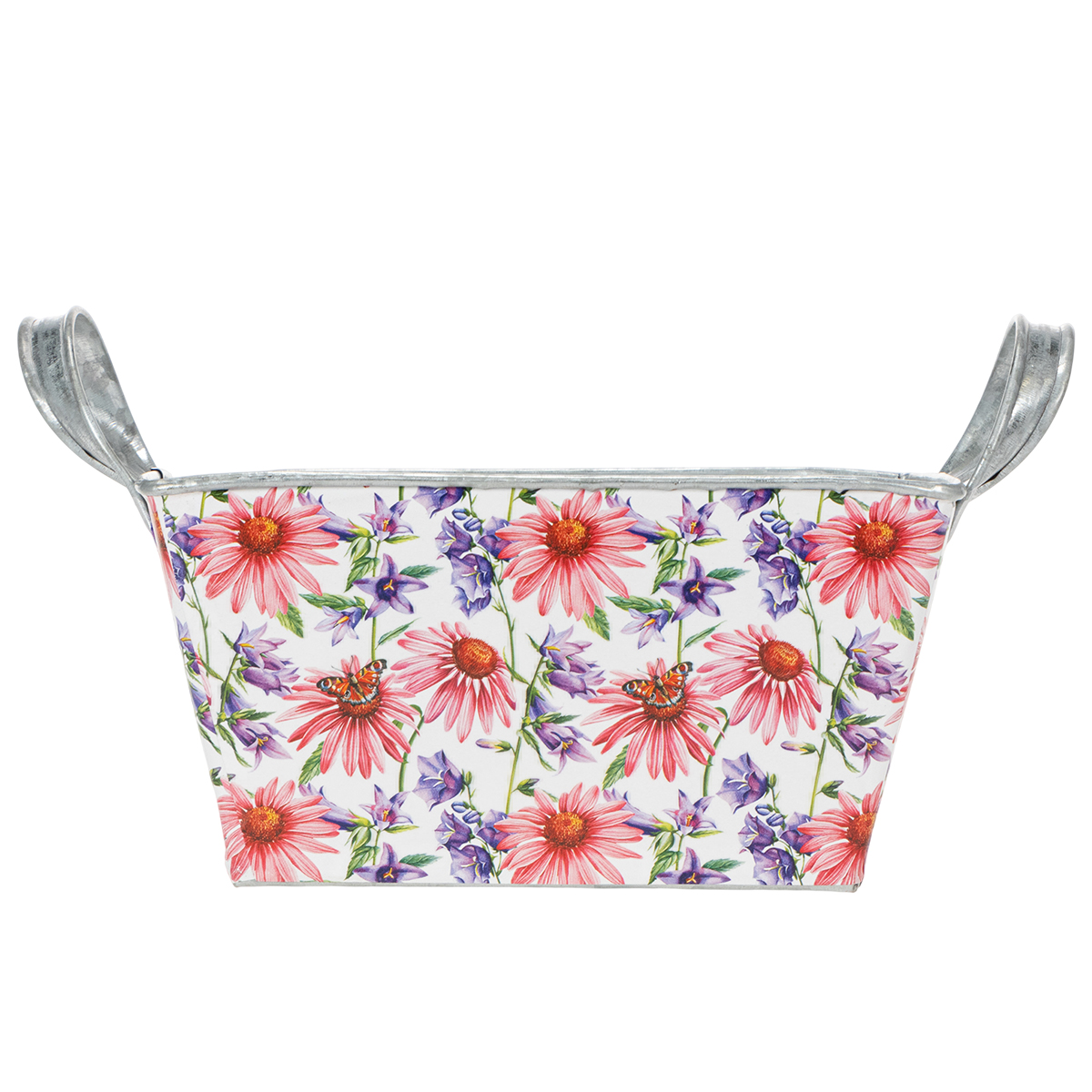 Nie przegap doniczek w tym metalowym żardinierze i ułóż wiosenne kwiaty w wyrazistych donicach z motywem echinacei.