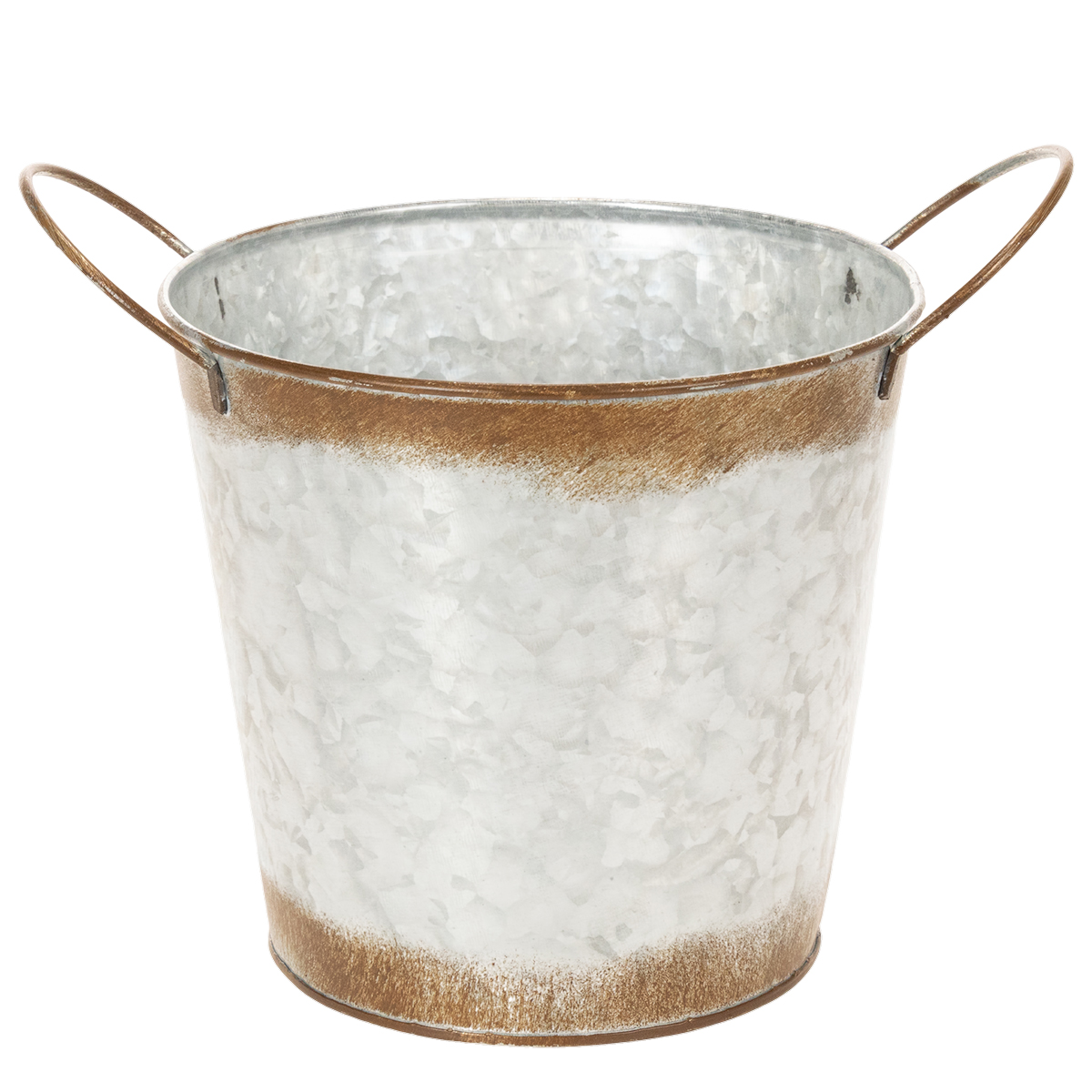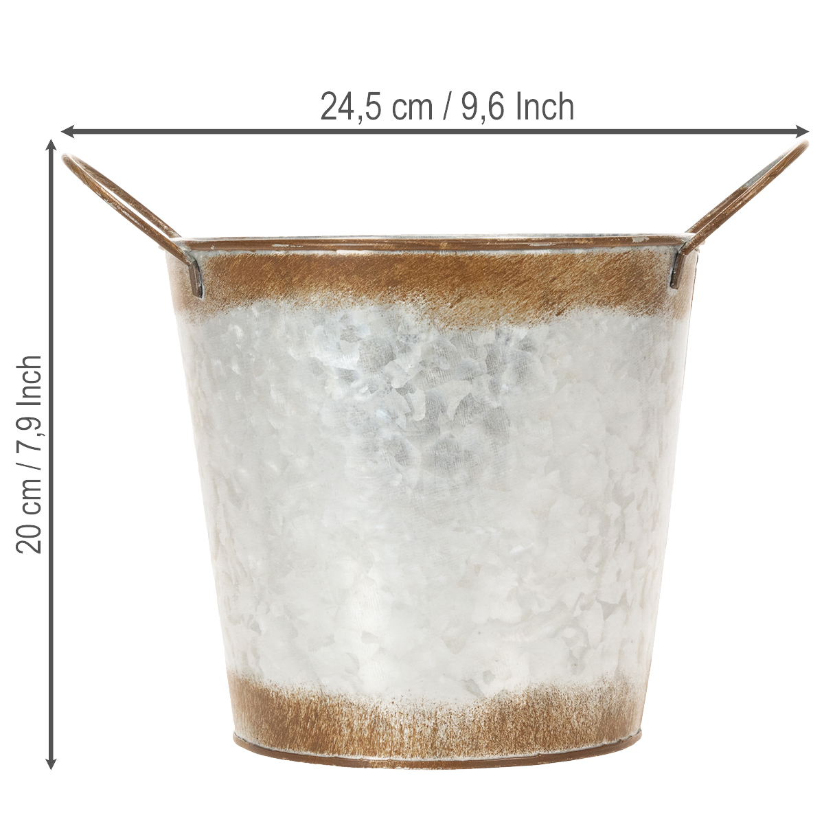 Metalowa doniczka, misa na kwiaty, doniczka ze srebrnymi uchwytami, wykończenie ze stali patynowanej, Ø18 cm, wys. 20 cm