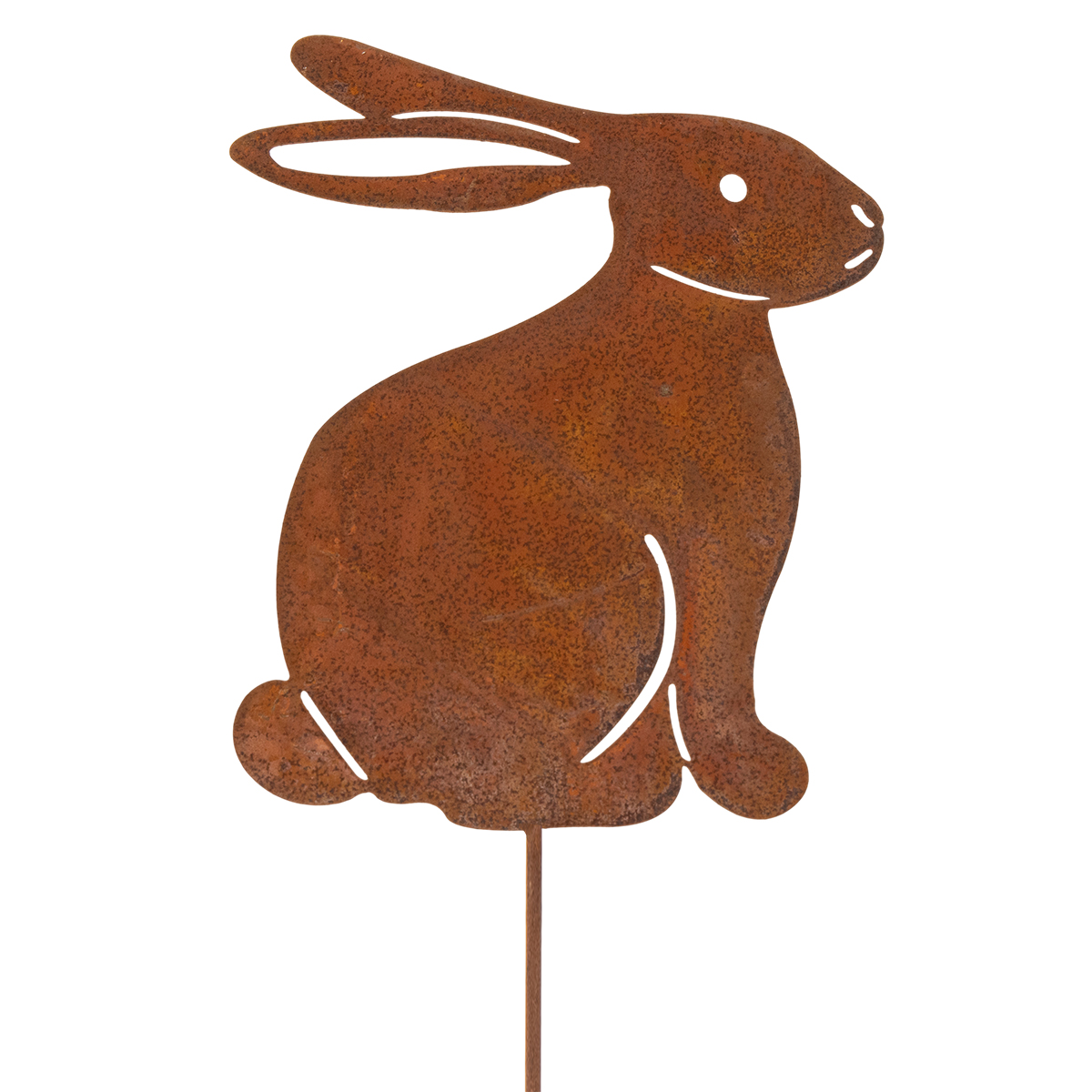 Palik ogrodowy dla królika wykonany jest z wytrzymałego metalu z naturalną, rdzawą patyną. Dzięki temu nie tylko prezentuje się przyjemnie ciepło, ale jest również wyjątkowo odporny na warunki atmosferyczne i trwały. Mierzący 100 cm wysokości i 23 cm szerokości królik osadzony jest na solidnym paliku, który można łatwo wbić w ziemię lub inne podłoże. Dzięki rdzawemu wyglądowi idealnie nadaje się do ogrodów o rustykalnym lub vintage'owym charakterze.