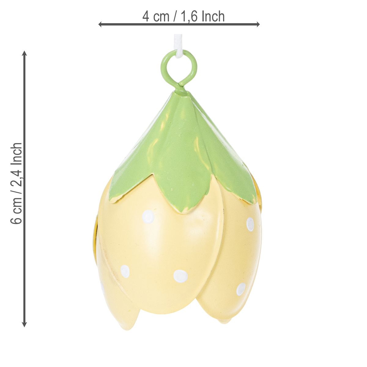 Te wiszące, metalowe kwiaty to idealny wybór dla miłośników zabawnych i romantycznych dekoracji. Mierzą 6 cm wysokości i 4 cm średnicy, są niewielkie, a jednocześnie stylowo przyciągają wzrok. Delikatne odcienie żółci i zieleni tworzą świeży wygląd i doskonale komponują się z różnymi stylami – od stylu rustykalnego i shabby chic po klasyczne kompozycje kwiatowe. Dzięki wysokiej jakości metalowej konstrukcji kwiaty są wytrzymałe i nadają się zarówno do użytku wewnętrznego, jak i zewnętrznego. Prezentują się szczególnie uroczo w przedpokoju, gdzie witają gości radosnym akcentem.