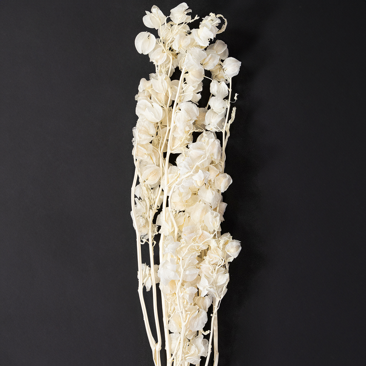 Nasze suszone, bielone kwiaty chińskie składają się z 75-80 cm długości, starannie zakonserwowanych łodyg, ozdobionych charakterystycznym, małym, przypominającym lampion pęcherzycą. Dzięki swojej prostej, białej barwie, te suszone kwiaty idealnie wpasowują się w różnorodne koncepcje aranżacji wnętrz. Nadają każdemu pomieszczeniu subtelnej elegancji, nie będąc przy tym nachalnym – stanowiąc element łączący proste piękno z więzią z naturą.