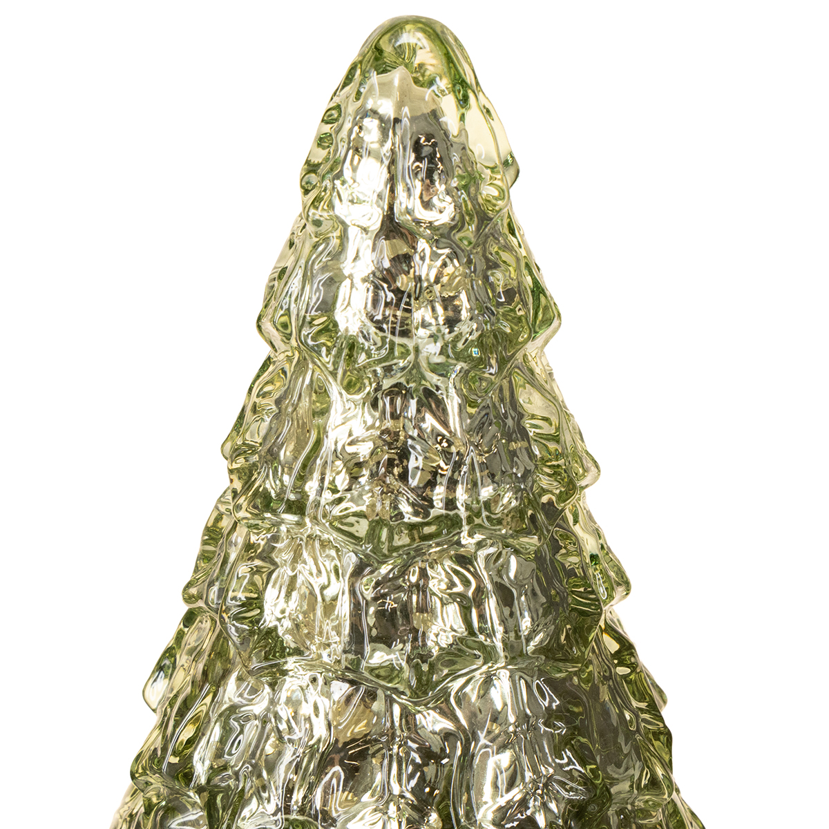 Srebrzysto-zielone szkło ze złotymi drobinkami i delikatnymi refleksami światła nadaje choince czarujący, vintage'owy wygląd. Dzięki wysokości około 28 cm i solidnej plastikowej podstawie z przegródką na baterie, można ją łatwo i elastycznie ustawić w dowolnym miejscu jako ozdobę stołu. Elegancka, olśniewająca i nastrojowa – ta choinka LED wniesie świąteczny klimat do Twojego domu i rozświetli każde pomieszczenie.
