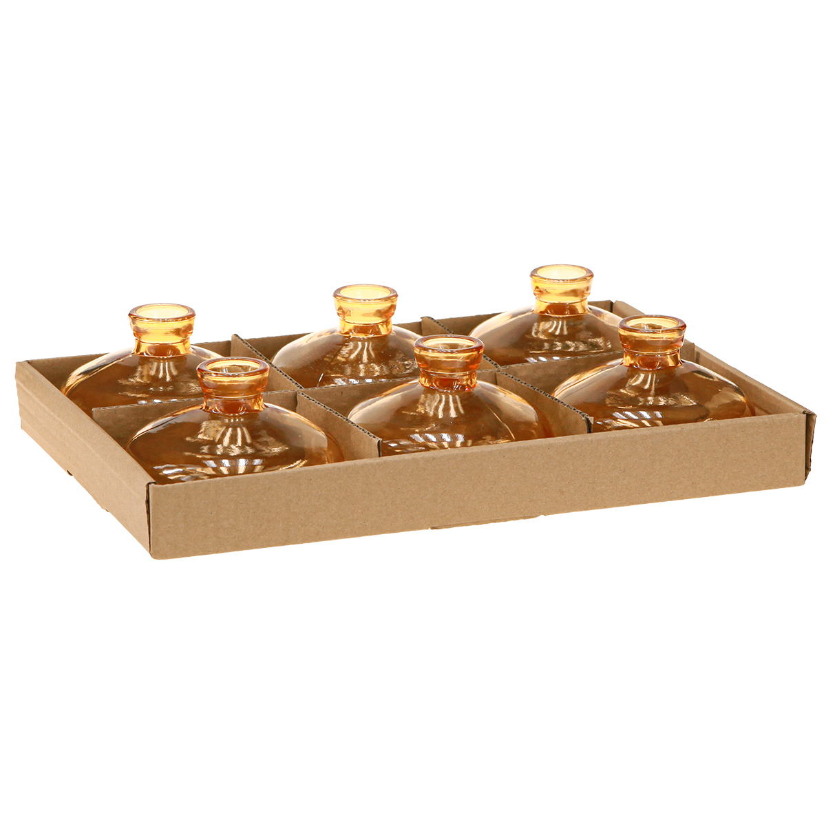 Mini wazony szklane wypukłe płaskie w kolorze pomarańczowym Ø9cm 6 szt